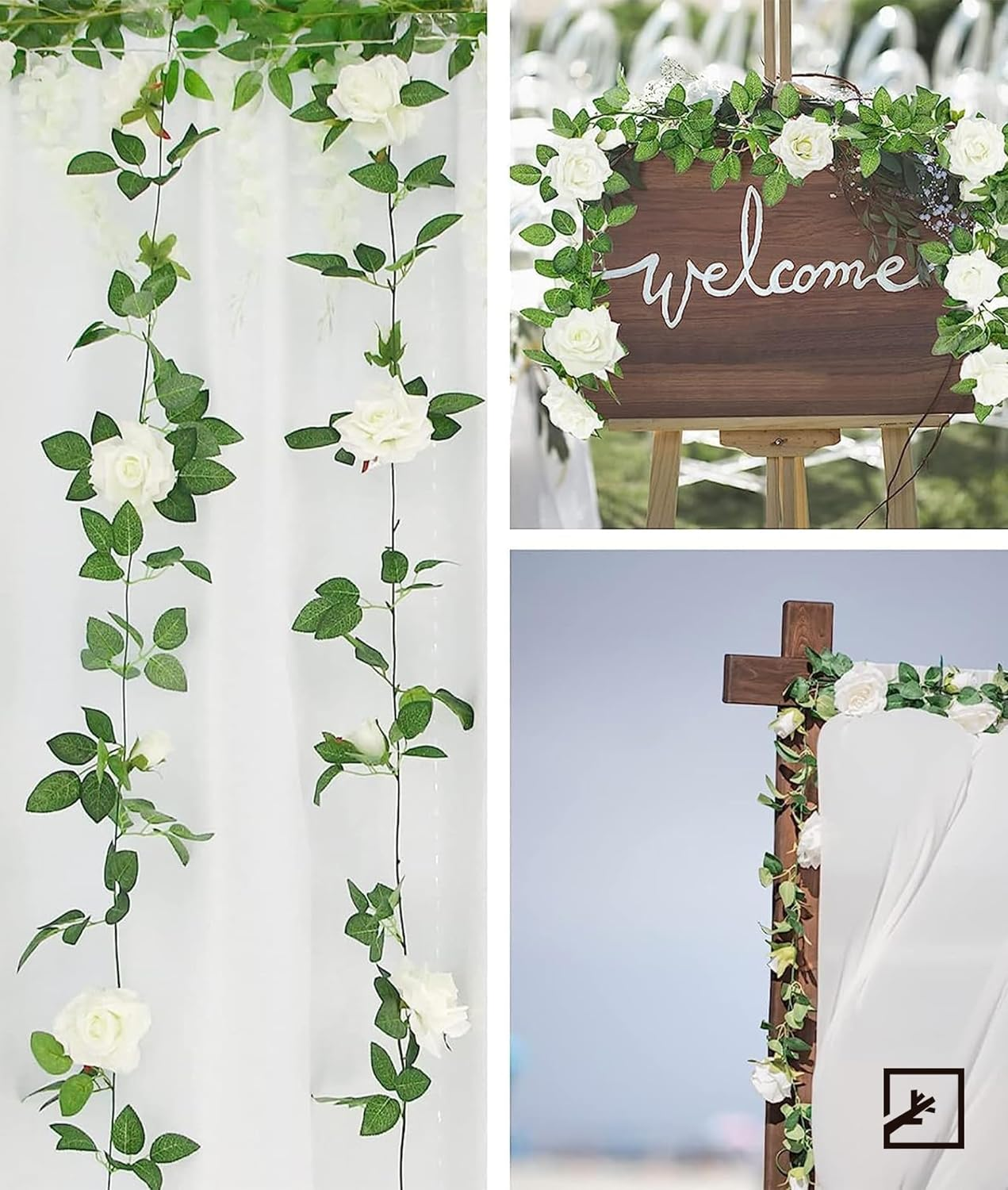 Love these white rose garlands! They look so realistic with full blooms and soft leaves. Perfect length for draping over arches, railings, or walls—no watering needed. The hooks make setup a breeze, and the quality is great for the price. Adds such elegant charm to weddings, parties, or home decor!