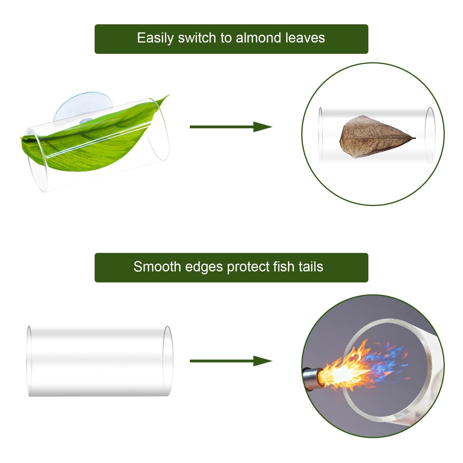 5Pcs Betta Hammock Set, Plastic Adjustable Betta Leaf Hammock with Suction Cup & 5 in 1 Betta Accessories Set: Includes 2 artificial lotus leaves, 2 double-layered leaves, and 1 betta fish tunnel. The leaf simulating the natural habitat for betta, while the transparent tunnel allows for better observation of your fish’s activity. These items also serve as great fish tank decorations and betta fish toys, providing both visual appeal and entertainment for your betta. Premium Materials for Betta Fish: The leaf is made from soft plastic, designed to be gentle on your betta's tail. The acrylic tunnel features smooth, polished edges to minimize risk of harm. These materials are designed for aquariums and do not affect water conditions. Easy to Install & Clean: Installation takes only 15 seconds—simply connect the branches to the suction cups and leaves. The mushroom-shaped suction cups provide a firm grip on your aquarium, which ensures the accessories stay securely in place. The hollow tunnel and detachable leaf design make cleaning effortless—simply rinse with water to maintain their appearance. Compact Design for Aquariums: The artificial lotus leaf measures 1.77 x 2.36 inches, the dual-layer leaf measures 1.96 x 5.11 inches, while the tunnel is 3.14x1.73 inches, making them compact and space-efficient. They provide ample room for your fish to rest and explore without overcrowding the tank. Extra Suction Cups for Extended Use: Each set includes additional suction cups to keep your product securely attached over time. No need to worry about wear and tear—enjoy long-lasting performance and peace of mind. This 5-in-1 Betta Accessories Set includes 2 artificial lotus leaves, 2 double-layered leaves, and 1 Betta fish tunnel, all designed to replicate a Betta’s natural habitat while allowing you to easily observe your fish. The soft plastic leaf is gentle on your Betta’s tail, while the acrylic tunnel features smooth, polished edges to minimize any risk of injury. Made from high-quality materials, these accessories are perfect for use in aquariums without impacting water conditions. Installation is simple with the mushroom-shaped suction cups, which provide a secure hold on your tank. The hollow tunnel and detachable leaf design make cleaning quick and easy—just rinse with water to maintain their appearance. Shipping We offer FREE shipping on all orders! We ship within Three business days of payment, usually sooner. We use a selection of shipping services such as UPS, FedEx, USPS etc. We only ship to the lower 48 states, no APO/FPO addresses or PO Boxes allowed. Local pickups and combined shipping options are not provided at this time. Return You can return a product for up to 30 days from the date you purchased it. Any product you return must be in the same condition you received it and in the original packaging. Please keep the receipt. Payment We accept payment by any of the following methods: PayPal Please pay as soon as possible after winning an auction, as that will allow us to post your item to you sooner! Feedback Customer satisfaction is very important to us. If you have any problem with your order, please contact us and we will do our best to make you satisfied. Contact Us If you have any queries, please contact us via ebay. We usually respond within 24 hours on weekdays. Please visit our eBay store to check out other items for sale! Thank you for shopping at our store.