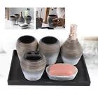 Features: Exquisite 6 Piecs Set: Includes 1 lotion dispenser, 1 soap dish, 1 toothbrush holder, 2 gargle cup, 1 tray. One set fits your daily washing need. Decorative Storage: Retro modern style adds a luxurious and exquisite feeling. Perfect Space Organizer: Organize and enhance your bathroom space, fits well in large or smaller bathrooms. Quality Material: Made of ceramics material, safe to use and easy to clean. A perfect bathroom decoration, can also be a warm gift. Also ideal for hotel, bathroom, hostel, etc. 5pcs Bathroom Accessories Set Lotion Dispenser Holder Ceramic Hotel Bathroom Welcome~ 5PCS Bathroom Accessories Set Lotion Dispenser Holder Ceramic hotel bathroom 1.Description Exquisite 6 Piecs Set: Includes 1 lotion dispenser, 1 soap dish, 1 toothbrush holder, 2 gargle cup, 1 tray. One set fits your daily washing need. 2.What's Included? 1 x Lotion Dispenser 1 x Soap Dish 1 x Toothbrush Holder 2 x Gargle Cup 1 x Tray 3.Features&Highlights Decorative Storage: Retro modern style adds a luxurious and exquisite feeling. Perfect Space Organizer: Organize and enhance your bathroom space, fits well in large or smaller bathrooms. Quality Material: Made of ceramics material, safe to use and easy to clean. A perfect bathroom decoration, can also be a warm gift. Also ideal for hotel, bathroom, hostel, etc. 4.Weights&Dimensions Material: Ceramics, Melamine Board(tray) Color: see pictures Pattern:5Pcs With Tray Lotion Dispenser/Cup Capacity: 400ml(13.53oz) Net weight: About 1.45kg 5.Specifications Lotion Dispenser: 9.5 x 17.2cm / 3.74 x 6.77in(approx.) Soap Dish: 12.1 x 8.8 x 2.8cm / 4.76 x 3.46 x 1.10in(approx.) Toothbrush Holder: 10 x 9.7cm / 3.94 x 3.82in(approx.) Gargle Cup: 10.2 x 9cm / 4.02 x 3.54in(approx.) Tray: 30 x 22cm / 11.81 x 8.66in(approx.) ☆ Payment Delivery details Terms of sales About us Contact us Payment We accept ebay payment 。 Fees such as import duties, taxes are not included in the item price or shipping costs. These charges are the buyer's responsibility. Delivery details Shipping: 2-9 working days to: USA Terms of sales We maintain high standards of excellence and strive for hundred percent customer satisfaction. Feedback is very important to us. We hope that you contact us immediately before you give neutral or negative feedback, so that we can address your concerns. It is impossible to address issues if we do not know about them! About us Your satis faction is our ultimate goal. We work hard to earn your trust and future business. Our certified technicians have tested each item before shipping. The unit comes with 1 year limited warranty on all manufacturing defects. a) If you receive a defective item, you may return it or ask for a discount. Please contact us within 14 days after you receive the package. b) What you returned must be intact and in its original packaging as re? u. Customer is responsible for shipping costs of the returned item. c) We will cover the cost of shipping back t with the shipping rate indicated in the registration page. We will send you a new unit or refund the full payment you paid. Thank you. Contact us Business Hour Business Hour: Monday To Friday: 8:30 AM to 5:00 PM (Beijing China time) Due to time zones, our reply to your questions may not be immediately. But within above working time, we will reply your email within 24 hours. If it's non-workdays, please kindly be patient and wait till Monday. Please contact us with ebay message. Please feel free to contact us if you have any questions. Monday To Friday: 8:30 AM to 5:00 PM (Beijing China time) Due to time zones, our reply to your questions may not be immediately. But within above working time, we will reply your email within 24 hours. If it's non-workdays, please kindly be patient and wait till Monday. Please contact us with ebay message. Please feel free to contact us if you have any questions. Material Ceramics, Melamine Board(tray) Brand Unbranded Color Gray Type Ceramics Bathroom Accessories Theme Simplity Size see Discriptions Shape Irregular Style Modern Capacity Set Feature 1 Convenient Use,Original size design fits perfectly Room Bathroom Department Adults Net Weight About 1.45kg Pattern 5Pcs With Tray Product Line Does not apply Set Includes Lotion Pump, Toothbrush Case Number of Items in Set 6 Lotion Dispenser/Cup Capacity 400ml(13.53oz)