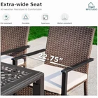 This patio dining set is a fantastic addition to any outdoor space! The heavy-duty black steel frame is both elegant and durable, with an e-coating that resists weather damage. The wood-like table is easy to clean and has a handy umbrella hole. The ergonomic rattan chairs are comfortable, fade-resistant, and feature a sturdy steel frame. Perfect for relaxing or entertaining guests—great value for the price!
