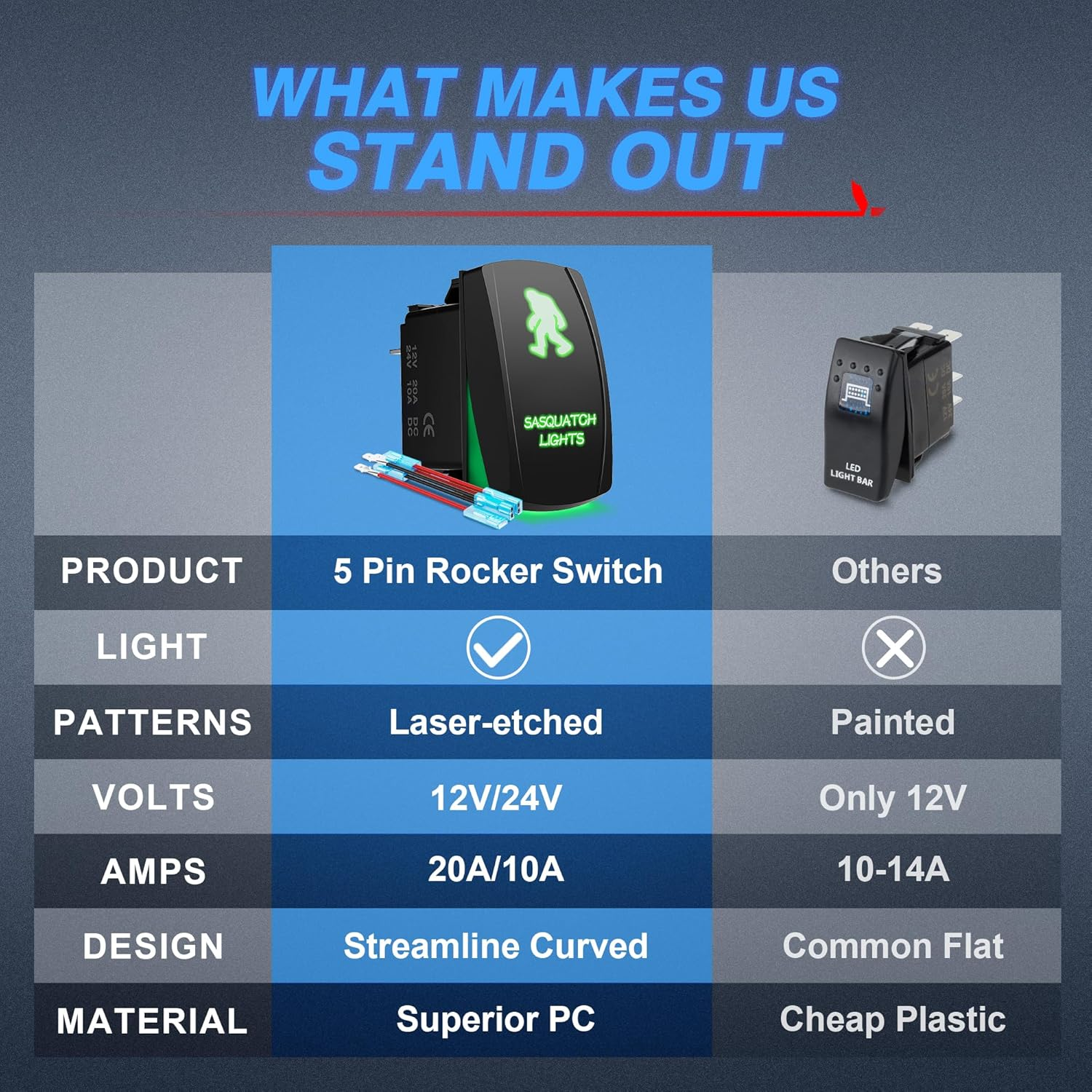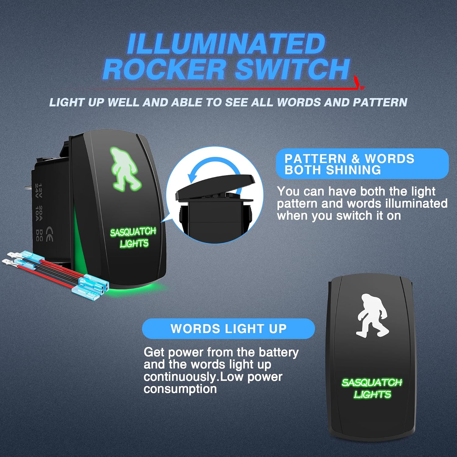 Store New Arrivals Add to Favorite View Feedback Contact 5Pin BIGFOOT Rocker Switch ON-OFF LED Light 20A 12V Green Description Item model number LS08303 Current Rating 20 Amps Number of Items 1 Upper Temperature Rating 100 Degrees Celsius Control Method App Terminal Pin Operating Voltage 12 Volts (DC) Number of Positions 2 Unit Count 1.0 Count Connectivity Protocol Wi-Fi Safety Rating ROHS Bulb Type LED Manufacturer Part Number LS08303 Is Discontinued By Manufacturer No Item dimensions L x W x H 2 x 1 x 1.6 inches Actuator Type Rocker Country of Origin China Connector Type Plug In Item Weight 0.32 ounces Model LS08303 Switch Type Rocker Material Rubber Mounting Type Surface Mount Color Green Mirror Lighting Type LED Global Trade Identification Number 00608613100676 Operation Mode ON-OFF Voltage 12 Volts Exterior Metallic Finish Contact Type Normally Open Product Dimensions 2 x 1 x 1.6 inches Contact Material Copper MICTUNING 5 Pin on-off Rocker Switch is SPST designed (Single pole single throw) switch, it come along with a set of jumper wires, simple to install, can easily turn on/off the lights Perfect Apperance - built in two premium LEDs emits cozy beam, penetrating to surface cover that illuminates the patterns, no longer fumble for the switch but clearly see it at the dark Sturdy Durability - made of strengthened plastic and well-conductive pins, and all patterns are etched directly onto the switch surface to ensure long lasting durability Wide Application - standard 5 Pin switch, rated at 20amp/12v and 10amp/24v, available for upgrading most wiring harness to control Led Light Bar, Led Work Lights, Fog Lamps, Headlights, Taillights and Auxiliary Lamps, etc What You'll Get - 2 Years Quality or Genuine MICTUNING 5 Pin Rocker Switch and Friendly Customer Service. Package included : 1x 5 Pin Rocker Switch,1x jumper wires set, 1x Diagram Product Description ABOUT US We offer the best prices around on high quality products. Our E-store includes media such as books, movies, music and games while offering electronics, toys, sporting apparel, clothing, tools, general home, garden items and more. SHIPPING We are always working hard to ensure your package arrives as soon as possible. Please understand that some factors like weather, high postal traffic, and the performance of shipping companies are outside of our control. We offer free shipping to the lower 48 states and ship within 2 business days of payment, usually sooner. We do not accept P.O. Boxes. Please provide a physical address. For shipping outside of the continental USA, we only use eBay's Global Shipping Program.The item is shipped to KY and then sent to the rest of the world. International customers are responsible for all duties and taxes. Continue to check out in order to calculate costs for shipping the item to your country. Messages regarding eBay's Global Shipping Program MUST be directed at eBay EXCLUSIVELY. RETURNS We offer a 30-Day Return Policy on items which you are not completely satisfied with. You have the option for a full-refund or an exchange of the item. No returns are available on items shipped outside of the USA. PAYMENT We accept PayPal. CONTACT US This page content is yet to come Please ad us to your favorite seller and visit again later Thank You CUSTOMER SATISFACTION We try our very best to make sure every customer is completely satisfied. If there's a problem, message us! We're happy to help. WE ACCEPT Copyright © 2021 AutoDS. | All Rights Reserved