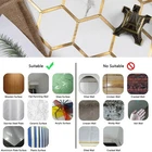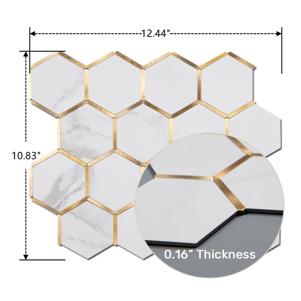 Size: 12-2/5" x 10-4/5" (316x275mm), Thickness: 0.16" (4mm) Just peel and stick, directly stick the tile on wall, save your time and money on labor. Easy for installation. Each backsplash tile sheet has brushed aluminum matted surface and self-adhesive back sticker, no grout.Strong stickiness, will not fall off. Tiles should not directly contact with flames or submerse in water. The tile's surface is resistant to heat and moisture, easy wipe to remove the stains. Please note that The tiles are suitable for installation on very smooth and clean surface, please note that rough surfaces such as orange peel wall, plywood wall, stucco wall, textured ceramic tiles or plywood wall are not suitable to install. We suggest that the tiles should be laid out before installation to get a satisfactory end result. Because its adhesive force is very strong, it's hard to tear them off. PVC peel and stick tiles is available in real wood texture, a variety of choices with today's popular furniture, electrical collocation bringing out the best in each other. Size: 5 sheet/box, 1 sq.ft./sheet, 5 sq.ft./box. Tile size: 12-2/5" x 10-4/5" (316x275mm), Chip size: 3", 4mm thicker design. 1% extra wastage is recommended in every project Easy to Install: Just peel and stick, no glue or grout needed, no mess, save your time and money on labor Strong Adhensive: DIY self-adhesive metal backsplash has strong adhesive and difficult to tear off after attached so please confirm the position carefully Wall Decoration Tile: This hexagon metal mosaic tile is heat-resistant and waterproof, easy to clean. Suitable for kitchen backsplash, fireplace, bathroom wall, laundry room, cabinet, etc Self-adhesive backsplash tiles should not directly contact with flames or submerge in water. Only recommended for clean and smooth surface