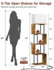 3 Lighting Modes & Stepless Dimming: The floor lamp features 3 lighting modes(Warm, Cool White, Daylight), dimmable brightness (from 5%~100%), and an anti-glare white lampshade for eye comfort. You can customize the light like reading, feeding, working, night light, and 1-hour timer modes in 1-second in the remote control. The long-lasting 9W LED bulb provides up to 25,000 hours of bright, clear light. 3 Color Light & Dimmable: The small bookshelf features 3 lighting modes(Warm, Cool White, Daylight), dimmable brightness (from 5%~100%), and an anti-glare white lampshade for eye comfort. You can customize the light like reading, feeding, working, night light, and 1-hour timer modes in 1-second in the remote control. The long-lasting 12W LED bulb provides up to 25,000 hours of bright, clear light. Remote Control & Pull Chain: Control your bookshelf lamp with ease using either the magnetic remote or the pull chain. The remote can be attached to the shelf's metal pole for quick access, allowing you to adjust the light settings up to 40 feet. For added convenience, the 1-hour timer automatically turns off the lamp, helps you sleep well. The floor lamp can remember your last setting, saving your time searching for the right light setting. Maximize Your Space: Measuring 15.0"L x 9.4"W x 57.0"H, this narrow bookshelf is perfect for compact spaces. With 4 open shelves (15.0"L x 9.4"W) that hold up to 30 lbs per shelf, it offers easy access from both sides. Each shelf is divided into 2 compartments, ideal for organizing books, plants, photo frames, toys, and all your favorite decor. A stylish, space-saving solution for any room! S-shaped Design & Wide Application: This standing lamp features a sleek S-shape with smooth, and concealed screw hardware for a look. Its versatile design works seamlessly in any room—living room, bedroom, office, hallway, or kitchen. More than just storage, the book organizer also works as a display case or room divider, perfect for creating partitions between spaces like your office and living area. Sturdy & Safe: This 5-tier tall corner bookcase is made with high-quality particle board and sturdy steel frame to last for years. The anti-tip hardware for wall mounting keep it stable and secure—no more wobbling! You don’t have to worry about your kids or pets accidentally bringing the display shelves down. The non-slip foot pads also protect your floors from scratches. Hassle-Free Installation & Maintenance: Assembling your wood book storage shelf is easy with the included instructions, tools, and numbered parts. Access our helpful assembly video for guidance. Enjoy a smooth setup and a stylish new addition to your space! Besides, the smooth surface is convenient to clean and maintain, which only needs to be lightly wiped with a damp cloth.