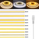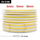 Specifications: Type: COB Led Strip Lights Input voltage: DC12V Power: 5-6W/m(5V); 8-10W/M(DC12V) FPCB Width: 3mm, 5mm, 8mm LED quantity: 320 LED/M Length: 0,5m, 1m, 2m, 3m, 4m, 5m Color temperature: Warm white (3000K), Natural white (4000K), Cold white (6000K) Cut length: 5V/12V 3mm: all 25mm 5V 5mm: all 25mm 12V 5mm: all 50mm 5V 8mm: all 25mm Waterproof quality: IP21 is not waterproof. Connection: 2-pin cable, USB-powered, DC connection USB plug cable length 15cm Operating temperature: -20℃~+45℃ Storage temperature: -20℃~+60℃ Viewing angle: 180° Propert ies: 1.Very smooth balance light, no illumination point, no dark area. 2. Super bright and soft light. 3.Much more bendable and flexible than any other SMD led strip. 4.Cuttable and jointable,can make any length you want. 5. RA>90, much friendly to eyes. Package included: 1x COB Led Strip