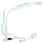 Easy to Use sensitive control, 10%-100% fully dimmable to provide the perfect brightness level that meets your different needs. Smart memory function, remembers the last light setting when restarts. Protect Your Eyes Eye-caring neutral white light, best light color for working, studying and reading. Increase concentration without irritating the eyes. for nighttime task lighting without disturbing others. Flexible Design 360 degree adjustable gooseneck design, you can , turn and rotate to all your desired directions and angles to find that perfect spot, 67inch extended cable for wherever you need. Wide Application Clamp base design will hold the lamp firmly and steadily on your bench, table desk, bedframe etc. space-saving lighting option to use in the dorm room, office, bedroom school without occupying too much space. Reliable Choice Integrated with quality LEDs, estimate 30,000 hours of lifespan, long-lasting and consistent performance for the time to come. Energy-saving and efficient choice. Our mission In , our goal is to provide quality energy-saving lighting products for our customers. With the expertise in the LED technology, our product not only superior in performance but also make your lighting experience more enjoyable and comfortable anytime, anywhere. < Specifications Wattage: 5W Luminous flux: 590lm Dimmable: 10%-100% Color temp: 4000K cool white Beam angle: 120 degree CRI: >80 Input voltage: 110V Output voltage: 5V Output current: 1A Max clamp width: 2 inch Lifespan: 30,000 hours LED numbers: 26 LEDs Color: White On Oct 27, 2024 at 20:19:53 PDT, seller added the following information: