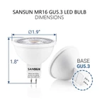 's MR16 LED bulb can be used in track light, pendant fixtures and ceiling fixtures. Personalize your home with stylish accent or ambient lighting. GU5.3 bulb series is a price-conscious product line that is designed to work beautifully and effectively in the general-purpose applications found throughout the home, office, and warehouse. By offering these products as a high quality yet cost-competitive option, we are able to provide the energy-smart LED products you need for the right price. COMMON APPLICATIONS Kitchens Living Rooms Dining Rooms Bedrooms Hallways FEATURES Replaces your current 50 Watt halogen bulb Lasts 15,000+ hours versus an halogen with a 1000-5,000 hour life hours Zero to minimal noise output in accordance with certificate regulations - maximum 16 dB. No UV, unlike fluorescent bulbs WHY LED? Reduce your electricity bill Help preserve the environment by reducing carbon footprint New technology provides increased lifespan compared to less-efficient incandescent NOTE: This is a GU5.3 which runs with 12V, therefore it cannot be plugged directly into an AC outlet. 5W MR16 LED Spotlight Bulb Equivalent 50W Halogen Bulb, Replace 20W/35W/40W/50W Traditional Halogen 12V AC/DC Low Voltage Designed for Landscape Lighting, Patio/Lawn/Path lights, Track Light, Floor Lamp, Ceiling Light Standard 12V 50W MR16 Shape with GU5.3 Bi-Pin Base Instant on at Full Brightness with 40 Degree Light Dispersment When Use Halogen Transformer, if Bulb Flickers, Pls Add 1~3 Halogen Bulbs in LED Bulbs Assembly (Due to low power consumption causes flickers) Recommended Use LED Transformer or Magnetic Transformer.