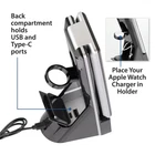 The Mainstays 5-in-1 LED Desk Lamp is a versatile and modern lighting solution that caters to a variety of needs. It features three different LED light settings—Warm White, Natural White, and Cold White—to create the perfect ambiance for any task or mood. The lamp's brightness can be adjusted gradually from 0 to 100%, ensuring comfort for the eyes in any lighting condition. Designed with convenience in mind, the lamp has a foldable hinge, allowing users to direct the light precisely where it's needed. The digital screen display adds a touch of sophistication, enabling users to easily set up clock and alarm functions. This lamp is not just about illumination; it also serves as a charging hub with Qi Certified wireless charging capabilities, offering a 15W charging pad for phones and a 3W charger for wireless earbuds. Additionally, it includes two extra ports—a Type C and a USB A—to accommodate various devices, ensuring that all your gadgets are powered and ready to go. The package comes complete with a 3ft Type C cable and a 20W PD charger, making it a comprehensive workstation accessory that combines functionality with style. On Nov 6, 2024 at 22:39:35 PST, seller added the following information: