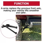 6" A-Arm Lift Kit for Yamaha G8-G14, G16, G19 G20 1995-02 Golf Cart Electric/Gas Description This lift kit will give your Yamaha G-Series cart a smooth riding 6" lift so you can fit on that brand new set of (up to) 22" all terrain golf cart tires on your cart. Specifiction Condition: 100% Brand New Finish: Black Powder Coating (not paint/no wear) Lift Kit Height: 6 inch lift (fits up to 22" tires) Tire Size Fitment: Up to 22" Proof load: 85,000psi Features This golf cart lift kit is forged from good steel for greater efficiency and durability. The black powder coating makes it durable and rust resistant. It can improve the overall performance of the golf cart. A-arms replace the previous front axle, making your Yamaha G series lift smoother and safer. Tire size fitment: Up to 22". Proof load: 85,000 psi. Heavy duty rear springs are recommended if the cart is heavily weighted to prevent rubbing with 22" tires. All Alloy Class 8.8 high strength hardware. The 6" lift kit is made of heavy duty alloy steel. Not easy to bend or break. Fits All Yamaha G Series model golf carts from 1995 thru 2002 (G8, G14, G16, G19, G20) Electric or Gas cart PLEASE NOTE : THIS LIFT KITS CANNOT BE MOUNTED ON G2/G9 OR G29(DRIVE) MODELS. Package Include 1 Set Of Front & Rear 6 inch A-Arm Lift Kit Includes spacers and adapter plates as required, can be installed with existing hardware.