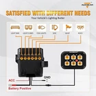 6 Gang Switch Panel BC60, Universal Circuit Control Relay System Box with Automatic Dimmable On-Off LED Switch Pod Touch Switch Box for Car Pickup Truck UTV ATV Boat, 2 , Blue 6 GANG SWITCH: Offers a perfect solution to clean up all wiring harness and add a single panel to control everything. This switch pod with 6 circuits can power all types of 12V accessories, Max power rating: 720W. Max current rating: 60A, Operating temperature: -40°C +105°C AUTOMATIC DIMMABLE SYSTEM: Upgraded 6 gang switch panel have automatic dimmable feature. When it in the tunnel or dark palces, will be dim to reduce the impact on the driver's vision, when it on the road or bright places, will be brighter to make driver control it easier. Compared with ordinary switch panel, our will improve your off-road and night driving experience EASY INSTALLATION & SAFETY DESIGN: Keep various wires organized and dry in such a compact control box. Come with wear resistant and plug&play wiring harness, fuse, relay and temperature protection switch. Two kinds of mounting ways for you to choose, you can install it with our mounting bracket or double-sided adhesive tape in any where, no need to cut a big hole on your vehicle WIDE APPLICATIONS: 100% efforts has been devoted to help driver save time, save money and safe driving. It was designed for use in any vehicle, allowing you to add professional control for your electronic devices in an easy-to-install system. For example, installed in Trucks, Pickup, UTVs, RZRs, Car, Boats PACKAGE INCLUDE: 1 x switch control box, 1 x switch panel, 2 x mounting brackets, 1 x strap, 1 x voltage protection switch, 1 x 2023 upgraded 10ft wiring harness, 1 x 2023 upgraded 60pcs DIY stickers, 1 x 2023 upgraded Installation Instruction. If you have any problems, please feel free to contact me, and we will provide you with perfect after-sales service! The product comes with a 2- protection provided by