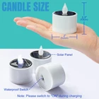 Specification: Function: solar powered Waterproof : IP65 rain-proof Material: LED + PP Candle Dimension: D 2'' x H 2.3'' Light Color: cool white flicker Working Time: 6-8 hours when fully-charged Battery: rechargeable 300mA capacity 【SOLAR POWERED RECHARGEABLE OUTDOOR TEA LIGHTS】Each solar-powered LED candle comes with a 300mA AAA rechargeable battery, can be fully charged under direct sunlight for 8 hours. Then the long lasting votive candles will provide you 8 hours of continuous lighting. The battery powered LED solar candles are reusable and save money. NOTE: Please switch ON the candles before charging. 【AUTOMATIC DUSK TO DAWN SENSOR】Size: 2 inch diamiter x 2.3 inch height. The solar led flameless flickering tealight come with a dusk to dawn auto sensor, which automatically turns on as soon as it gets dark outside and turns off in daytime or bright area. These battery operated solar votive candles are ideal for outdoor garden, yard, patio, fence, barbecue, wedding, anniversary, Halloween, Christmas decorations. (NOTE: These candles are larger than most tea lights and votive candles.) 【IP44 OUTDOOR WATERPROOF LED TEA CANDLES】The solar candles outdoor waterproof are made of high-quality resin plastic material which are realistic and weatherproof. No more worrying about raining, snowing, or summer heat, the electronic flameless flickering votive candles are perfect for outdoor patio furnature, porch, deck, table top, balcony, tree, poolside decor etc. 【MULTIPURPOSE OUTDOOR SOLAR CANDLE】The electrontic led solar tea lights candles are outdoor waterproof and can be put in large hurricane decorative lanterns, mason jars, small glass ball, rustic metal candle holder. They will create a novelty and romantic atmosphere by lighting up the your entrance walkway and driveway. These flameless fake candles bulk are ideal for outside gazebo, lawn, garden, path, backyard, beach, camping tent decorations. 【RELIABLE TO USE】No smoke, no flame, no fire, no heat, these battery operated led tea light candles are safe and reduce the problems caused by the burning of traditional candles, which can be applied around children, , pets without worrying about fire-related accidents. The flameless solar tealight candles bulk are greats for , pathway, stairway, courtyard, Xmas, window decor.