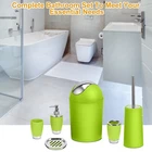 eBay 6Piece Bathroom Accessories Set Toothbrush Cup,Soap Dispenser Soap Dish Toilet Brush Holder Trash Can Product Detail Image Gallery Product Description Features: Reliable and Durable Made: Adopting high-grade PP materials and premium electroplating surface finish,our bathroom accessories set is hardness,toughness,lightweight,non-toxic,odorless and safe. Comparing to breakable glass-made one,it is more durable and secure to use. Complete Bathroom Set to Meet Your Essential Needs: 6 Pcs Bathroom Set,including 1pcs soap dispenser,1pcs soap dish,1pcs toilet trash can,1pcs toilet cleaning brush with holder,1pcs toothbrush holder and 1pcs tumbler. User-Friendly Design: The 360° cleanable toilet cleaning brush comes with a particular holder to hold it after use,the toothbrush holder adopts a smile face design to hold at least two brushes as well as toothpaste,at the bottom of the tumbler adopts anti-slipping design to make it stand steadier and at the middle of the soap dish adopts hollowed-out design to help dry the water on the soap,etc.. Excellent Bathroom Decorator: Adopting classic and elegant black as its main color and embellishing with sleek electroplating silver color,our bathroom accessories can match various styles of bathrooms. Great Gift: Our useful,practical and economical 6pcs bathroom essential accessories are a great gift for your families,friends and yourself. Specifications: Brand: New Home Product Type: Bathroom Accessories Set Material: PP Color Available: Black/White/Blue/Aqua/Pink/Purple Item Size: As the Picture Show Item Weight: 779g/1.72lbs Packaging Size: 19.5cm x 19.5cm x 26cm/7.68in x 7.68in x 10.24in (L x W x H) Packaging Weight: 926g/2.04lbs Package Contents: 1 x Bathroom Accessories Set (Totally includes 6 pieces) 1 x User Manual Terms & Conditions Thank you for your business !