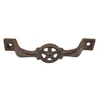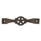 6 Star Cast Iron Handles #G071 Lot of 6 new handles Made of cast iron with a rustic brown finish Measures 6 1/4 inches in total length by 1 inch wide at the base Each handle has 2 predrilled holes Mounting holes are 5 3/8 inches apart The space between the mounting surface and the handle is 1 1/4 inches Great for rustic furniture, coolers, shed doors, drawers or cabinets Mounting screws not included
