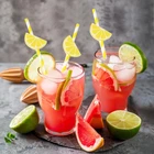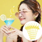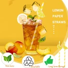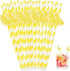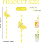 60 Pcs Lemon Paper Straws Disposable Cocktail Straws for Drinks Striped Straws for Milkshake Lemonade Stand Supplies Decorations