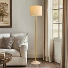 Simple Minimalist Boho Farmhouse Standing Lamp for Bedroom, Office, Gold Pole Lamp(Without Bulb) Unique Elegant Design Floor Lamp: The gold pole and lamp base are wrapped with rope, and with the natural linen shade, creating an elegant bohemian look that can be easily incorporated into most decorating styles such as Modern, Classic, Country, Vintage, Farmhouse, Coastal Nautical, Northern European and more Tall Floor Lamp & Space-Saving: This floor lamp is 63'' tall, this size is ideal for most rooms including living room, bedroom, study, dining room, sofa, and any other room that requires lighting from a height. And We recommend you use a 2700K warm white light to fit this standing light which can create a cozy atmosphere. Note: Bulb not included Sturdy Safe Heavy Base Corner Lamp: Built with sturdy metal material, this standing lamp is sturdy and tip-resistant, not easy to bent and fall down. It has an excellent stability which will prevent falling when it's knocked by kids or pets. 6FT cable allows you to place the tall bedroom lamps in any place you want Easy to Install: This Farmhouse Floor lamp just needs 5-10 minutes to be installed, no additional tools are required. You only need to do a quick lamp shade assembly, and screw the poles one by one from the top to the bottom and pull the cable during screwing, then insert them on the base Customer Satisfaction: We are committed to providing our customers with premium products and services, your satisfaction is our top priority. If you are not satisfied with our lamps, please contact us and we will give you a satisfactory answer within 24 hours