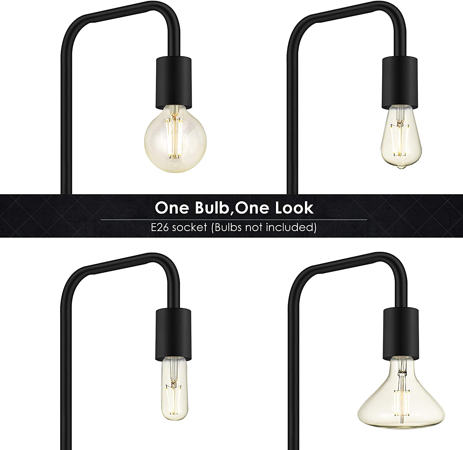 You Decide the Style; Are you looking for a black floor lamp with a unique design and also a 100% match with your home style; BoostArea industrial floor lamp is your ideal answer; This standing lamp comes with a built-in E26 Standard Base Socket (Bulb Not Included), which gives you much more space to design it according to your home style and your own taste; When using different shapes and colors of bulbs, the lamp gives various looks; Change the Bulb, Change the Look; Tips: Only for E26 bulbs Design, Less is More; BoostArea industrial floor lamp made with matte black metal, without complex adds, this cool minimalist floor lamp offers a comfortable and delightful ambiance to your home with the modern pole and exposed bulb (Bulb Not Included); Less is more, thanks for the simple design, this standing lamp leaves space for you to DIY, you are the designer for your unique room; Pick it as the floor lamps for bedroom or living room, enjoy with vintage, mid-century or contemporary styles Easy Assemble and Use; This 63 inches floor lamp is easy to assemble without any tools, you just need to screw all the parts together via following the instruction on the page; 6 ft cord and its compact base allow you to move the modern floor lamp in any corner of your room, sliding it behind a sofa or place it beside a cabinet as you like; Besides, combined with the footswitch, you can easily tap the cool floor lamp on or off with your foot; Easy to assemble and use, makes your life much easier Whole Metal and ETL Listed; This industrial floor lamp is 100% made of metal from head to toe; With a strong metal pole and weighted metal base, this vintage floor lamp provides good stability from falling, which is safe for you and your family; Besides, this black floor lamp passes ETL Safety Standard Test, it ensures the safety and quality of this Edison floor lamp Compatible with smart devices; You can plug this corner floor lamp in the smart plug (not included), add it to your home appliances group, and easily controlled it by your phone; This boho floor lamp stand also compatible with an E26 smart bulb (not included), intelligent design help you enjoy easier life and home automation Product Description BoostArea Industrial Floor Lamp BoostArea focusing on the development of lighting products; We have been providing the world with innovative and affordable products; This Industrial Floor Lamp combines contemporary component and metal material, offer our customer premium floor lamp with a vintage and stylish design Change the Bulb, Change the Style The vintage floor lamp is compatible with E26 Bulbs (Not included), you can choose an E26 Edison bulb or E26 LED bulb (Not included) as you like; BoostArea industrial floor lamp brings in some vintage charm and rustic appeal to your space Creat Your Own Style Are you looking for a floor lamp with a unique design and also a 100% match with your home style; BoostArea industrial floor lamp is your ideal answer; BoostArea standing lamp gives you much more space to design according to your home style and your own taste Whole Metal, Convenient Footswitch This standing lamp is made of metal from head to toe, comes with a stable base, matte black pole and a convenient footswitch; An innovative way of lighting up space, by means of a simple and long-lasting design; BoostArea floor lamp, designing a new, unique, visual ambient for your home
