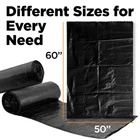 Multipurpose Extra Large Trash Bags - These 65 gallon trash bags heavy duty can hold or store large volumes of construction, residential, or industrial waste. These 50x60" big trash bags come in 50-packs. Thick Contractor Bags - These industrial-grade drum liners are tough with a 1.2 mil thickness. The heavy duty material makes these bags strong against accidental rips, punctures, and tears. No More Ill-Fitting Bags In Trash Cans - Lining your garbage can with these 64-65 gallon heavy duty garbage bags is easy because the gusseted design makes for a better fit. This also helps keep nasty leaks at bay. An Eco-Conscious Choice - Each polyethylene heavy duty trash bag is made of partially recycled materials, making these lawn bags a good choice for those who wish to reduce their carbon footprint. Locally Made - These large contractor garbage bags are made in the USA.