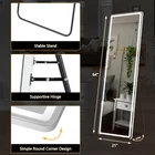 FULL SIZE: 64" x 21" LED lighted mirror, large enough for you to see your entire figure in a single glance. Adopt 120 LED beads strip per meter, light more concentrated and brighter, energy-efficient. This is not only a floor mirror, but also a piece of art in your house that can bring you a nice mood every day. 3 COLORS & ADJUST BRIGHTNESS: The brightness and light temperature of this mirror full length are controlled by a smart touch button. Short press the touch switch to change the color temperature into white light, warm light, and yellow light. Long press the switch for seconds to adjust the brightness you like. UPGRADED NANO GLASS: Our long mirror is made of durable 3.2 mm high-definition nano glass. Upgrade explosion-proof nano glass with pure silver layer is more high definition and not easy to break. Even if it is accidentally damaged by an external force, the broken pieces of the mirror will not splash in all directions. ALL-MATCH: No Assembly Required. The floor length mirror can stand anywhere with the standing holder. You also can lean it against a wall, or you can hang it horizontally or vertically on the wall for space-saving. It is suitable for a bedroom, living room, cloakroom, home gym, corridor, clothing shop, etc. PACKAGING: Our mirror packaging fully passes the international drop test.