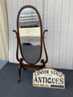 Item Description- Quality antique Victorian oak cheval mirror. It is tight and sturdy and in very good condition. WE SHIP ANYWHERE IN THE USA. IF YOU NEED A HOME DELIVERY QUOTE EMAIL US YOUR ZIP CODE. THE EBAY SITE IS SOMETIMES BROKEN AND WILL NOT LET YOU PURCHASE AN ITEM SAYING WE DO NOT SHIP TO YOUR LOCATION. THE WORK AROUND IS TO MAKE AN OFFER FOR THE AMOUNT STATED ON THE LISTING THEN WAIT FOR ME TO INVOICE YOU BEFORE TRYING TO PAY. SHOWROOM NUMBER 609 261 0602. SHIPPING: Center Stage does our own deliveries to New York, Pennsylvania and New Jersey including the New York city and Philadelphia area every 1-2 weeks at very reasonable rates. For rates please email us with zip code. Age- circa 1910 Size- 33"W x 24"D x 71"H Mirror 22"W x 55"H This item can be packaged, insured and shipped via freight directly to your home. BUYER IS RESPONSIBLE TO PAY SHIPPING COSTS ON ALL ITEMS! If you need home delivery email us with your zip code for a quote. Large items or those over 100 lbs. will need freight shipping and we are happy to provide a free quote but you will pay the shipper directly. Expect delivery times on these items to be approx. 2-6 weeks depending on your location. All local deliveries within 50 miles and to NYC are done by Center Stage Antiques. If you are picking up from our store you will need to contact us with a pick up time. NJ residents and buyers picking up are subject to NJ sales tax. Center Stage Antiques has been at its current location for 23 years, selling high quality used estate furnishings at a fraction of the cost. All items are sold in their original condition and ready to place in your home. If you have any specific questions regarding the condition of an item please email us before bidding. We are a small family business who do everything ourselves including packaging and local deliveries. We package and ship small items for greyhound once a week, once shipped you can expect your item to arrive within 5-10 days depending on your location. We will then email you the tracking # and expected time of arrival, greyhound will call you when it arrives to pick up from the station.