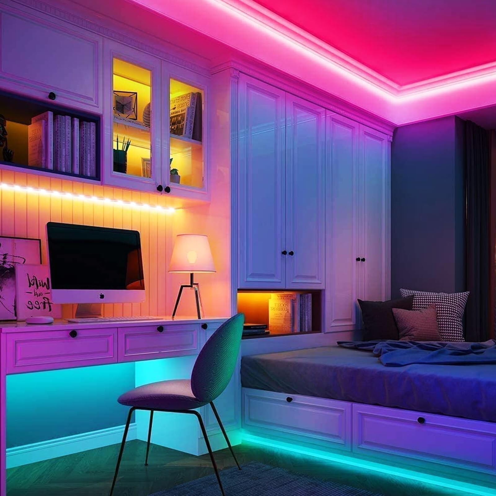 Led Strip Lights 65.6ft for Bedroom 5050 RGB Led Strips with Remote Control, Selfadhesive Cuttable LED Lights for Room Kitchen Party Home ✓ Free 60 Day Returns ✓ Free Express Shipping Description: Features: One Roll 65.6ft Ultra LongThis 20m / 65.6ft LED strip light is super long enough to cover the largest room up to about 30m2 in size. Flexible to install wherever you want; Compared to 2x32.5ft light strips, our 1x65.6ft light strip is more convenient for selecting the location for control and power placement, avoiding waste of light strip length Brighter LEDs Compared to other 12V LED lights, our 24V technology makes the LED brighter and more even; 5050 SMD LEDs, soft light and no glare. Two-layer copper is used on the circuit board to make the RGB color mixing smoother and brighter, Longer lifespan Widely ApplicationLED strip lights can be applied to your house (wall, ceiling, closet, TV backlight, bed, sofa, mirror, stairs, bar, workspace) to add some ambience. And great decorative light for holiday, party, show exhibition and more. Simple decor that does more than you expect, makes it look like a different environment with just a few clicks. Note: This tape light is not waterproof Easy InstallationJust connect all the parts in the package, then peel off the string light's protective layer, stick it on a clean, dry flat surface and start using. The cut design allows you to trim it via a crop mark and decorate as you wish Safe and Durable24V operating voltage led strip produces extremely low heat; Has been given color memory function, short circuit protection, overcharge protection, etc., ensure safety. 5050 SMD LEDs, soft light and no glare. Two-layer copper is used on the circuit board to make the RGB color mixing smoother and brighter, Longer lifespan Product Details: Color: Multicolor Brand: ETRLNXY Special Feature: Color Changing Light Source Type: LED Power Source: wired_electric, Corded Electric Light Color: RGB Theme: Music Occasion: Christmas Style: Modern Material: Vinyl, Metal Package Dimensions : 9.13 x 7.32 x 1.5 inches; 14.39 ounces Date First Available : August 17, 2022 Manufacturer : ETRLNXY Customer Reviews: 3.8 3.8 out of 5 stars 210 ratings Color: Multicolor Brand: ETRLNXY Special Feature: Color Changing Light Source Type: LED Power Source: wired_electric, Corded Electric Light Color: RGB Theme: Music Occasion: Christmas Style: Modern Material: Vinyl, Metal Controller Type: Remote Control Connectivity Protocol: Bluetooth Connectivity Technology: Bluetooth Number of Light Sources: 400 Voltage: 24 Volts Wattage: 26 watts Number of Items: 1 Control Method: Remote Manufacturer: ETRLNXY Item Weight: 14.4 ounces Package Dimensions: 9.13 x 7.32 x 1.5 inches Special Features: Color Changing Batteries Included?: No Batteries Required?: No Date First Available: August 17, 2022
