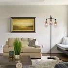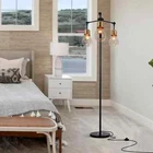 65 in Steampunk 3-Lights Floor Lamp Industrial Adjustable Head Tall Floor Light About this item 【Farmhouse Floor Lamps】65 inch Tall floor lamp combines 3 vintage glass lampshades with black metal pole, showing the fusion of farmhouse and retro style, which can be perfectly matched with any decoration in your home. You can put the floor lamp in the living room, bedroom, office or corner to create an elegant and warm atmosphere for your family. Simple floor lamp is suitable as a gift for family and friends! 【Sturdy Industrial Floor Lamps】This 3 light rustic standing tall lamp is made of high-quality metal, the base and pole are heavy and stable, ensuring stability even on carpets. Black standing tall lamps fit well on your desk, sofa and bedside. Stand up lamps bring tall visual effects when creating an artistic ambiance in your room. 【Bulb Requirement】Floor lamp for living room is featured standard E26 base bulb sockets,it need 3Pcs LED Bulbs(Bulbs Not Included). Different bulbs will bring different visual effects to the bedroom floor lamp. Standing tree lamp fits well with modern, casual, and artistic decor styles. Standing floor lamps are suitable for living room, bedroom, office, study, bar, club, restaurant, etc. 【Easy Installation】Black tall lamp is easy to assemble, you can complete the assembly in a few minutes. The light source of this black floor lamp for dining room is stable and doesn't flicker, and the light creates a soft and smooth atmosphere, which can effectively prevent eye fatigue. 【Standing Tree Lamp After Sales】This elegant farmhouse industrial floor lamp is highly recommended to professionals. If you have any questions, please contact us as soon as possible, no matter what difficulties you encounter, we will serve you wholeheartedly! Feature: Color:Black and gold Product Weight:16 lbs Voltage: 110V Number of Lights: 3-light Light Source: E26 base bulb(NOT included) Suggested Room: Dining room, living room, bedroom, office, storage room.