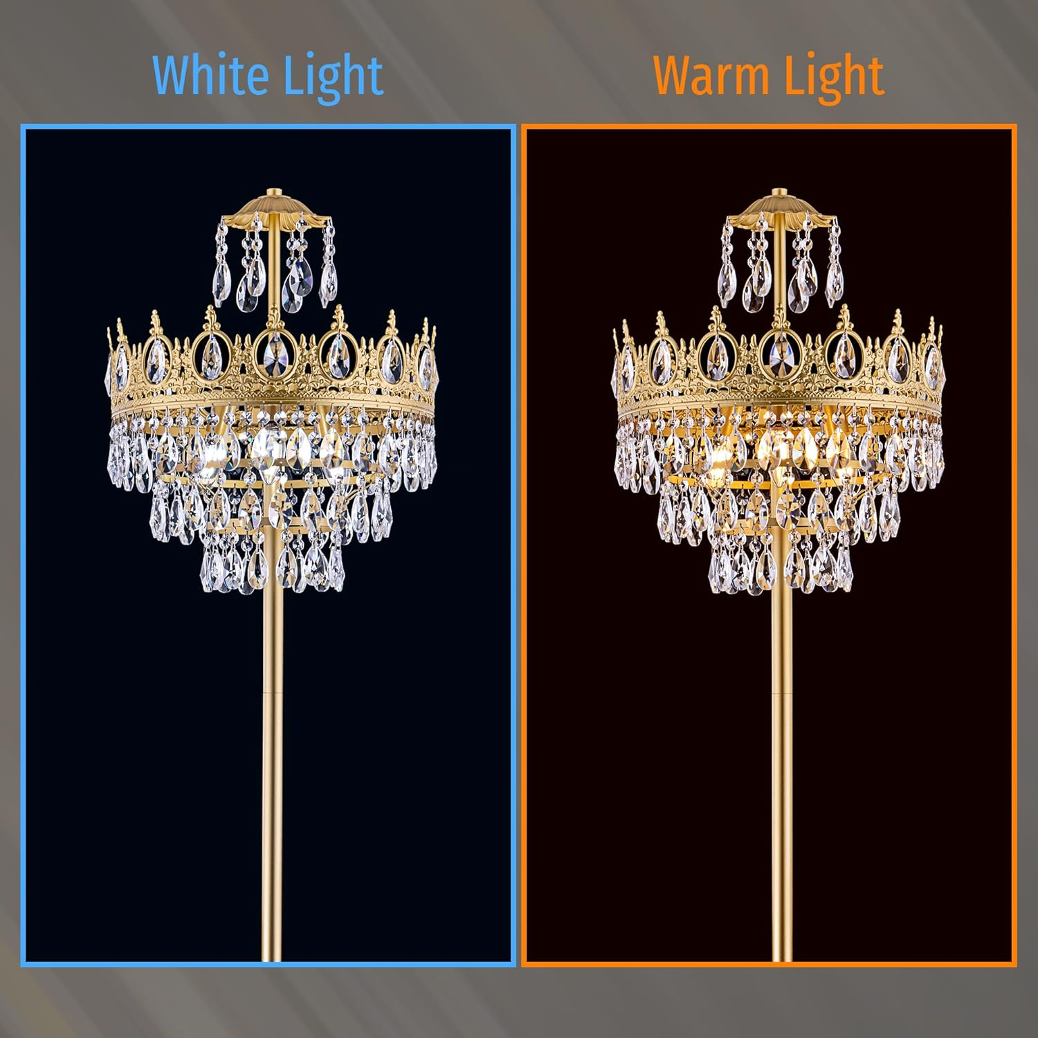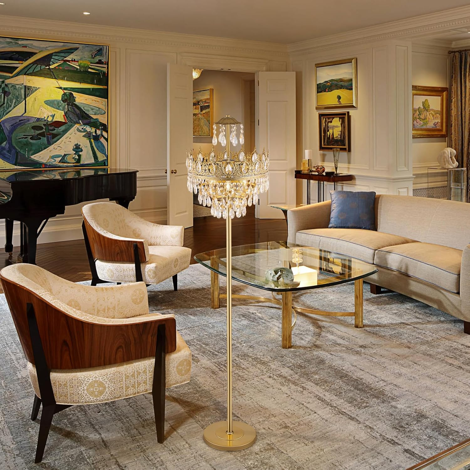 Store New Arrivals Add to Favorite View Feedback Contact 3 Lights Gold Floor Lamp - Modern Farmhouse Crystal Standing Lamp, 66" Tall Adjustable Unique Chandelier for Bedroom, Living Room, Kids Room, Office, Corner Description Item model number DS-CFL027-Gold-US Light Source Type Halogen, LED, Fluorescent, Incandescent Style French Country Number of Items 1 Power Source Corded Electric Number of Light Sources 3 Country of Origin China Batteries Included? No Lighting Method Adjustable Lamp Type Floor Lamp Controller Type Foot Control Room Type Office, Kids Room, Entryway, Bedroom, Living Room Efficiency Low Product Dimensions 15.8"D x 15.8"W x 66"H Material Metal, Crystal Installation Type Freestanding Finish Type Painted Specific Uses For Product Decoration Manufacturer Company Indoor/Outdoor Usage Indoor Bulb Base E12 Control Method Touch Water Resistance Level Not Water Resistant Batteries Required? No Item Weight 15 pounds Connectivity Technology Normal bulb Special Features Adjustable Height, Dimmable, Adjustable Arm Special Feature Adjustable Height, Dimmable, Adjustable Arm Part Number CFL027 Shade Color clear Mounting Type Floor Mount Color Gold Wattage 60 watts Is Cordless? No Base Material Metal Is Waterproof false Shape Round Voltage 110 Volts Recommended Uses For Product Reading, Decoration Shade Material Crystal Finish types Painted Included Components On-Off Switch, Mounting Hardware, Power Cable Base Diameter 11 Inches Switch Type Foot Corner Floor Lamp: The light passes through the cascading crystals, bright but not dazzling. The gold decorative border adds a modern fashion style to the floor lamp. Its eternal elegance adds a special atmosphere to any room Art Deco Floor Lamp: Modern floor lamp diameter 13.8", height 66" with a foot switch, and comes with a 71-inch plug-in cord, allowing you to move freely indoors. This bright floor lamp works in a bedroom, living room, corridor, hallway, or in a reading nook Easy Installation: Includes all the necessary assembling and installation parts along with clearly marked labels, just need to follow the installation instructions. The unique light pole is composed of 4* 13.8" (35cm) long short poles, which can be freely adjusted to the height according to the space requirement Blub Type: 3*E12 Bulbs, 110V voltage, Max 60W per bulb. Compatible with LED, incandescent, CFL, and Halogen bulbs (Bulbs not Included) Quality Service: We also offer free replacement of damaged parts during transportation or have other problems, please contact us through the Amazon message box, and we will do our best to solve your problems Product Description TOCHIC Crown Shade Design Crystal Floor Lamp Features: Dimmable: It is dimmable when using dimmable bulbs and a compatible dimmer switch (Not Included). Easy to install: Comes with the necessary hardware and instructions for quick and easy installation. The unique light pole is composed of 4* 13.8" (35cm) long short poles, which can be freely adjusted to the height according to the space requirement. Applicable place: Dining room, bedroom, aisle, living room, hallway, lounge, stairwell, balcony, hotel, coffee halls, bars, clubs, shops, entrance, cloakroom, etc. Warm: Please be sure to note the 66" tall floor lamp size before ordering. In case of missing parts or any quality issues with this crystal floor lamp, please tell us. For daily care just wipe with a dry rag, and switch off the power before cleaning the floor lamp. Dimensions: Max Height: 66 inches Min Height: 25 inches Overall Dimensions: H 170cm (66") x W 40.13cm (15.8") Pedestals: D 11 inches, stable and not easily tilted Length of wires:71 inches, allowing you to move freely indoor Electrical Specifications: Maximum Bulb Wattage: 60W Bulbs: 110 V USA for E12 bulbs (not included) Number of Lights: 3 lights Light Source: LED bulb, Incandescent or CFL bulb( NOT included) 1 Product Features 2 Highly Refractive Crystal 3 Crown Shade Design Frame 4 E12 Bulb Base Scene Display Crown Shade Design Light Fixture Add to Cart Add to Cart Add to Cart Add to Cart Add to Cart Customer Reviews 5.0 out of 5 stars 3 2.5 out of 5 stars 3 3.7 out of 5 stars 4 4.1 out of 5 stars 21 — 4.2 out of 5 stars 6 Price $189.99 $ 189 . 99 $179.99 $ 179 . 99 $219.99 $ 219 . 99 $269.99 $ 269 . 99 $389.99 $ 389 . 99 — Diameter 13.8 inch 13.8 inch 18 inch 24 inch 28.5 inch 31.5 inch Finish Color Gold Gold Gold Gold / Antique Bronze Gold Gold Bulb Type & Number E12*3 E12*3 E12*6 E12*9 E12*9 E12*6 Material Metal, Crystal Metal, Crystal Metal, Crystal Metal, Crystal Metal, Crystal Metal, Crystal Height Adjustable ✔ ✘ ✘ ✔ ✔ ✔ ABOUT US We offer the best prices around on high quality products. Our E-store includes media such as books, movies, music and games while offering electronics, toys, sporting apparel, clothing, tools, general home, garden items and more. SHIPPING We are always working hard to ensure your package arrives as soon as possible. Please understand that some factors like weather, high postal traffic, and the performance of shipping companies are outside of our control. We offer free shipping to the lower 48 states and ship within 2 business days of payment, usually sooner. We do not accept P.O. Boxes. Please provide a physical address. For shipping outside of the continental USA, we only use eBay's Global Shipping Program.The item is shipped to KY and then sent to the rest of the world. International customers are responsible for all duties and taxes. Continue to check out in order to calculate costs for shipping the item to your country. Messages regarding eBay's Global Shipping Program MUST be directed at eBay EXCLUSIVELY. RETURNS We offer a 30-Day Return Policy on items which you are not completely satisfied with. You have the option for a full-refund or an exchange of the item. No returns are available on items shipped outside of the USA. PAYMENT We accept PayPal. CONTACT US This page content is yet to come Please ad us to your favorite seller and