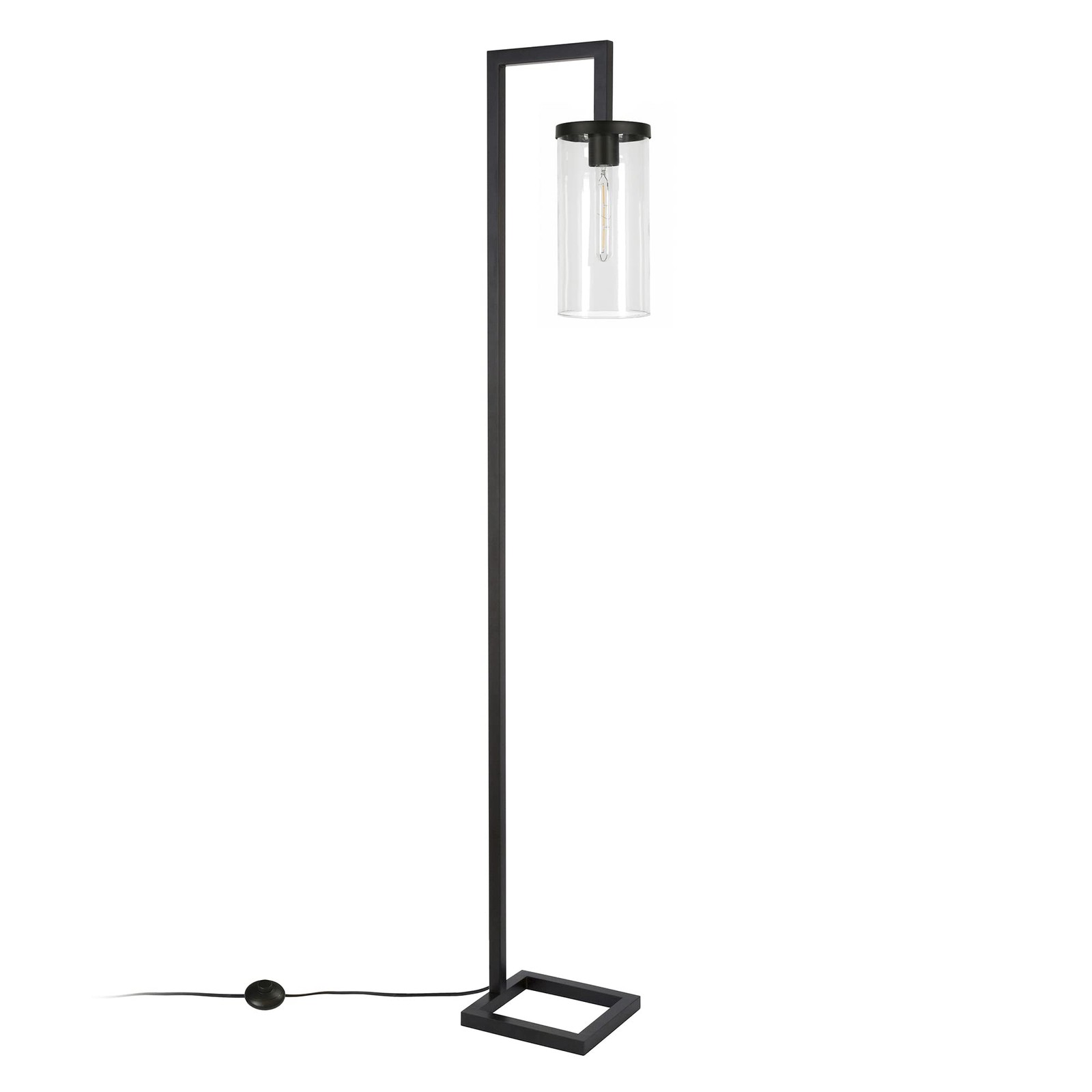 Modern and contemporary design for your living room, office space, bedroom, or reading nook. Handcrafted blackened bronze finish is applied to the round metal base. Paired with a clear cylinder glass shade. Rated for one 100W incandescent bulb; 9W LED bulb, 23W fluorescent (CFL) bulb, or 9W self-ballasted LED bulb. E26-base bulb. Bulb not included. Includes a 8 ft. cord with foot switch.