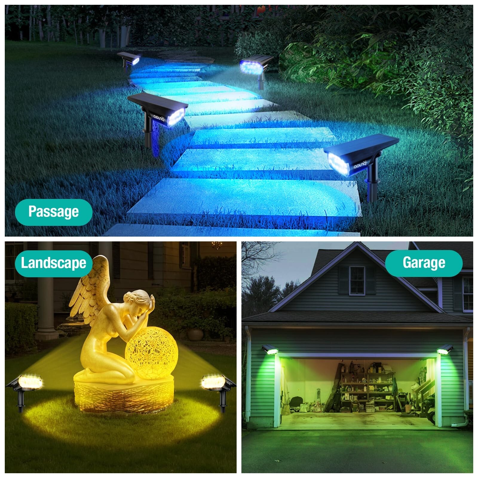 68 LEDs RGBW Solar Spot Lights Outdoor, 1000 Lumens 9 Lighting Modes Color Changing Solar Outdoor Lights, IP67 Waterproof Solar Spotlight 2-in-1 Landscape Garden Light for Yard Patio, 4 Pack Product Details Color: Multi-colored-4Pack Brand: AOUNQ MPN: AO-AO-USA 64LED Color UPC: 726929081462 EAN: 0726929081462 Brand: AOUNQ Color: Multi-colored-4Pack Material: High-impact ABS Plastic, High Efficiency Monocrystalline Silicon Style: Garden Light fixture form: Spotlight Product Dimensions : 5.7 x 4.13 x 9.84 inches; 2.42 Pounds Item model number : AO-AO-USA 64LED Color Batteries : 1 Lithium Ion batteries required. (included) Date First Available : September 20, 2023 Manufacturer : AOUNQ Country of Origin : China Customer Reviews: 4.0 4.0 out of 5 stars 253 ratings Brand: AOUNQ Color: Multi-colored-4Pack Material: High-impact ABS Plastic, High Efficiency Monocrystalline Silicon Style: Garden Light fixture form: Spotlight Room Type: Yard Product Dimensions: 5.7"L x 4.13"W x 9.84"H Specific Uses For Product: Provides bright and beautiful lighting for patios, decks, porches, walls, gardens, landscaping, pathways, flags, decorations, lawns, backyards, and more Indoor/Outdoor Usage: Outdoor Power Source: Battery-powered, Solar-powered, Or USB Charge Installation Type: 2-IN-1 Solar Spot Lights Outdoor: 1.With ground stakes and wall mounts. you can easily insert it into the ground as a solar landscape lights.2.Use screws (included) to fix it on the wall as a wall light Special Feature: Adjustable Color Temperature, New Super Bright 64 LEDs Solar Outdoor Lights for Yard Control Method: Touch Light Source Type: LED Finish Type: Polished Number of Light Sources: 64 Voltage: 5.5 Volts Theme: Flag Light Color: Multicolor Included Components: 4-pack lights in One Package, Each light consists of 64 led light Bulbs. Lighting Method: Adjustable Item Weight: 2.42 Pounds Number of Items: 4 Wattage: 2.1 watts Controller Type: Push Button Switch Type: Push Button Unit Count: 4.0 Count Water Resistance Level: Waterproof Brightness: 1000 Lumen Mounting Type: Wall Mount Fixture Type: Non Removable Assembly Required: No Manufacturer: AOUNQ UPC: 726929081462 Recommended Uses For Product: Light up trees or flags, porches, paths, swimming pools, patios, gardens, garages, driveways, paths, and more. Model Name: AO-AO-USA 64LED Color Part Number: AO-64-color Item Weight: 2.42 pounds Country of Origin: China Item model number: AO-AO-USA 64LED Color Batteries: 1 Lithium Ion batteries required. (included) Finish types: Polished Special Features: Adjustable Color Temperature, New Super Bright 64 LEDs Solar Outdoor Lights for Yard Batteries Included?: Yes Batteries Required?: Yes Bulb Features: Dimmable Color Temperature: 6500 Kelvin Date First Available: September 20, 2023 Super Bright 64 LEDs RGBW Solar Landscape Spotlight: The upgraded outdoor solar spotlight is equipped with an astonishing 64 RGBW LEDs (market leading), scientific and efficient LED arrangement makes it easy to generate 2700K~6500K+ 120o wide angle light output up to 1000 lm. Solar Spot Lights create the perfect lighting effect whether installed in the garden, yard or garage, pathway, etc. And let you enjoy the beautiful colored lights on the dark night without paying high electricity bills. 9 Lighting Modes of Outdoor Solar Lights & Auto ON/OFF: The solar lights outdoor waterproof have 9 lighting modes set to meet your needs in different scenarios-White, Rainbow, Red, Green, Blue, Lemon Yellow, Purple, Cyan, Color cycling, you can switch between modes by button. The solar panel of the solar spot lights have a light sensor, which can be automatically turned on and off according to the change of light in the environment. High-impact Material & IP67 Waterproof: High-strength PC+ABS material and thickened waterproof silicone layer design make the solar spotlights outdoor waterproof have strong IP67 waterproof and High-impact characteristics, can withstand the minimum -4F, the maximum 160F the external ambient temperature. Whether it is severe weather such as storm, heavy rain, snow, high temperature or other extreme weather, you can use solar lights with confidence. Efficient Solar or USB Charging & Longer Lighting Time: In addition to being equipped with larger area, more efficient polycrystalline silicon solar panels and 2000mAh battery, spot lights outdoor also supports "solar or USB charging" charging method, which can provide you with up to 20+ hours of lighting time in daily life; even in continuous cloudy days or lack of sunlight in winter, it can be powered by a USB charging cable (included) Fast charging, easy to solve your electricity anxiety. BUY "ONE" GET "TWO" - 2 In 1 Function & Easy Installation: With ground stakes and wall mounts, you can easily insert it into the ground as a solar landscape lights to illuminate your palm trees, agave, etc. It is fixed to the wall as a solar wall lights (with screws) to illuminate flag or wall. Both installations are easy to install and perfect for house, front door, yard, patio, fencing, garden, swimming pool, garage, driveway, pathway, porch, deck, flower bed and landscape lighting and more.