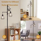 【Well-made & Strong Base】: stand up lamps made of superior metal from top to the base, black matting surface. Three light cages are firm and heavy-duty, never bent. The pole is straight and tightly connected with the base, no swing. Base is reliable enough, don’t mind falling down because of a sign of disturbance or trouble. It’s quite safe to use. 【Upgrade Stepless Dimming( 0-100% ) Floor Lamp】Unlike the traditional non-dimmable floor lamps for living room, our dimmable floor lamp is fully Stepless Dimmable. Just simply twist it and then you can adjust the industrial floor lamp in the brightness range of 0 to 100% according to the needs of different scenes. Perfect for general indoor areas which including Dining room, Living Room, Bedrooms, Office, Kitchen, Corridor, Cafe, Basement, Bar, Club, Restaurant, Library and Reading Room. 【Adjustment Branch】stand up lamps with a Up-Down adjustment branch,If you wanna change different styles,you can easily adjust the height and angle you want.Provides brightness and vibe when use. 【Edison Bulbs Included 】: This tall floor light fixture includes 3 ST64 9W Edison bulbs with 30000H lifespan, saving energy, money and providing convenience for you.it can provide enough lighting for your 215-square-foot room. 【Easy to Install】TTENTION APLEASE: this tall black standing lamp is easy to get it together, just follow the right steps to install this country retro floor lamp from the top to the base, during process, adjust wire from time to time, otherwise the wire may be too stiff to pull. (Warm Tips: there are 3 screws have been fixed into holes on the pole, we need to unscrew them before installation.