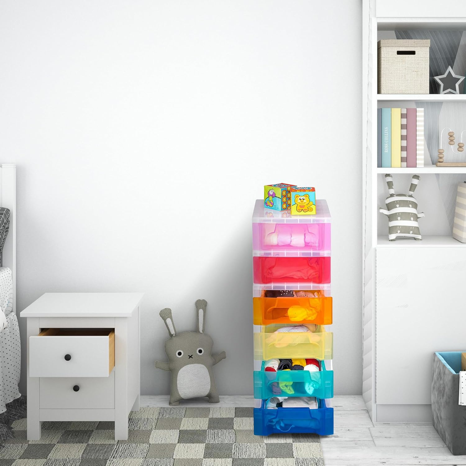 Menu Other Items Feedbacks About Us Contact Us Add To Favorites 6-Drawer Cart Organizer, Plastic Storage Drawers, Home Storage Organizer with Removable Castor Wheels, Rainbow Generous Storage Space: Storage tower boasting 6 drawers with a substantial 3.5 liters of capacity for organizing office supplies, crafting materials, or personal essentials, providing a comprehensive solution to your storage needs Easy Identification: Featuring transparent rainbow drawers allowing you to effortlessly identify the contents stored within each compartment without the need to open each drawer Space Optimization: Slimline design that is ideal for tight spaces, ensuring you can efficiently organize your belongings without compromising on style Added Versatility: Plain flat top feature that allows you to transform your storage tower into an additional surface for storage or display Effortless Mobility: Equipped with removable castor wheels allowing you to move the drawer tower from one room to another and locks securely in place, providing stability when needed Product Description Item Specification Item Dimensions D x W x H 27.95"D x 9.25"W x 11.81"H Color Clear/Rainbow Material Type Plastic Product Dimensions 27.95"D x 9.25"W x 11.81"H Material Plastic Required Assembly No Item Weight 4091 Grams Frame Material Plastic Number of Drawers 6 Frame Material Type Plastic Size 6 Drawers Dimensions Shipping Returns Additional Info Product Dimensions: 9.25 "h x 27.95 "h x 11.81 "h. Weight: 4091.0 grams Fast shipping is very important for us. Our standard shipping service is FREE. Your order will be shipped within 1-3 business days upon full payment received. Most items are delivered within 3-5 business days, however, please allow 3-10 business days. We are shipping only to USA. We only ship to the confirmed Paypal address. We reserve the right to cancel any order for any reason at any time. We are not responsible for undeliverable addresses. We offer a 30 day return policy from checkout winning date. Your satisfaction is guaranteed! If for any reason you are unhappy with your item, just return it within 30 days for a full refund, minus shipping cost. Please contact us prior to initiating a return so that we can issue you a refund authorization. Items defective upon receipt must be packaged in their retail packaging as if new and returned with a detailed description of the problem. Return shipping fees are not refundable. We reserve the right to decline any returns if the above guidelines are not followed. All of our items, unless otherwise stated, will only run on 120 volts. Please check to make sure your country complies with these specifications. If you have a problem or question regarding your transaction please contact us before leaving any type of feedback. We will work with you to resolve any problem you may have.