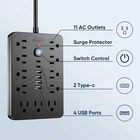 About this item 【17 in 1 Compact powerstrip】With dimensions of just 6.5" x 4.3" x 1" (16.5cm x 11cm x 2.5cm), JouleLoom 6 FT extension cord power strip redefines portability without compromising on functionality. 11 AC outlet is strategically spaced 1.2 inches (3cm) apart, allowing for a remarkable 17 plugs to be accommodated effortlessly. Experience unparalleled convenience and versatility in a sleek, space-saving design, perfect for home, office, or travel use. 【More Thoughtfully For Use】With 4 centrally positioned USB ports & 2 USB-C ports, alongside 11 AC outlets strategically placed around the edges. This scientific configuration ensures optimal utilization of each socket, accommodating a wide array of devices seamlessly. 【Multiple Security Protection】JouleLoom 17in1 power strip integrates an 8-point safety system, including surge protection, fire resistance, overload protection, temperature control, and more. It has overload protection and will light up red during normal operation. When overloaded, the power switch will automatically trip to protect the equipment. Press the switch to restore. It ensures complete safety for you and your devices, whether at home or in the office, for long-lasting and stable operation. 【Intelligent USB Charging】- Streamline your charging setup with this surge protector featuring smart USB port technology. Equipped with 4 USB-A and 2 USB-C ports (Max 12W/2.4A), it ensures optimized charging for smartphones, game consoles, eliminating the need for bulky USB chargers. 【Space Saving Design】- Experience the ultimate in space efficiency with JouleLoom 6FT surge protector's slim flat plug, measuring a mere 0.7 inches thick. Unlike traditional plugs, its unique 45-degree right-angle design ensures it won't obstruct neighboring outlets. Plus, with two multi-directional hanging holes, you can easily mount it horizontally or vertically on workstations, walls, counters, bedrooms, optimizing your space like never before. 【Safety Assurance】 - ETL Certified,It is safe for you to use. Our friendly and reliable customer service will respond to you within 24 hours. You can purchase with confidence, with our 30-day return and 12-month replacement.