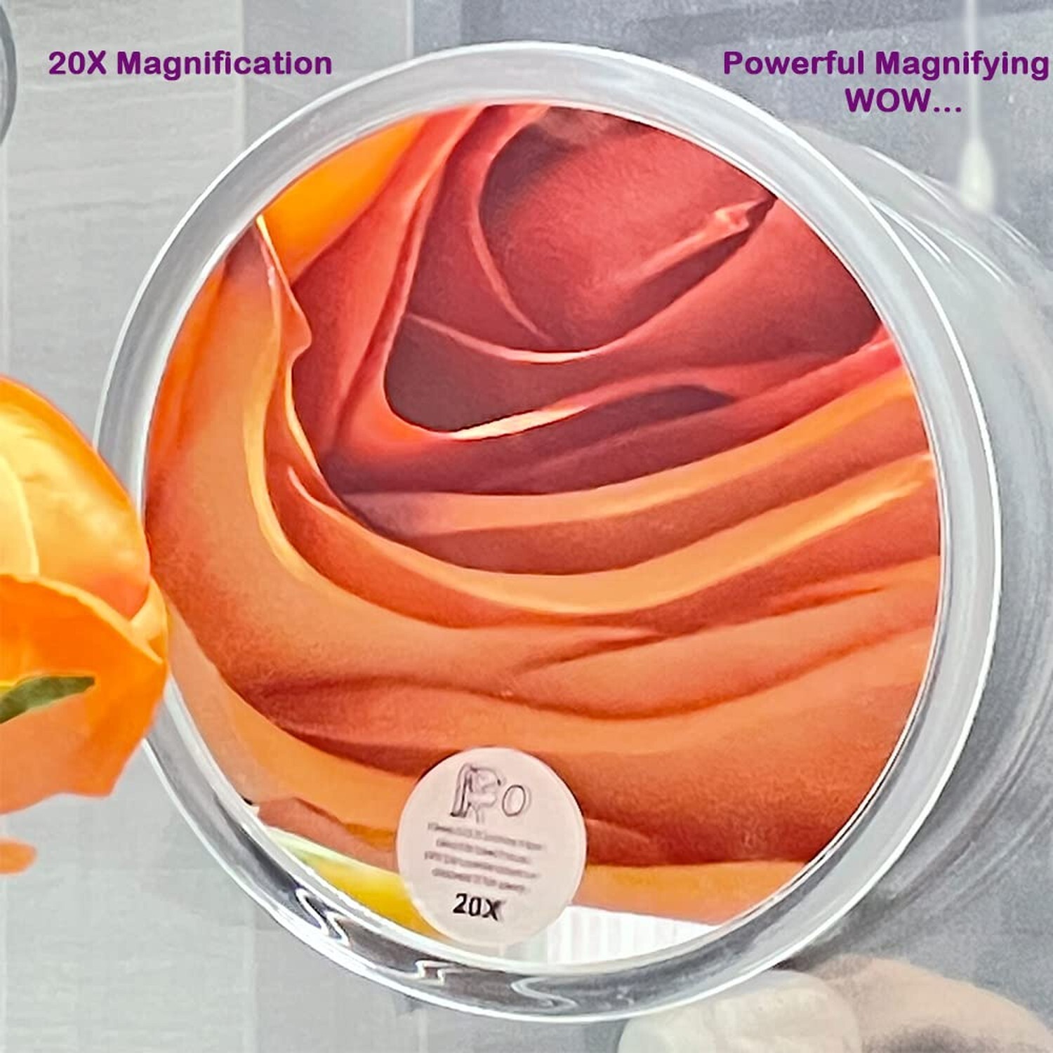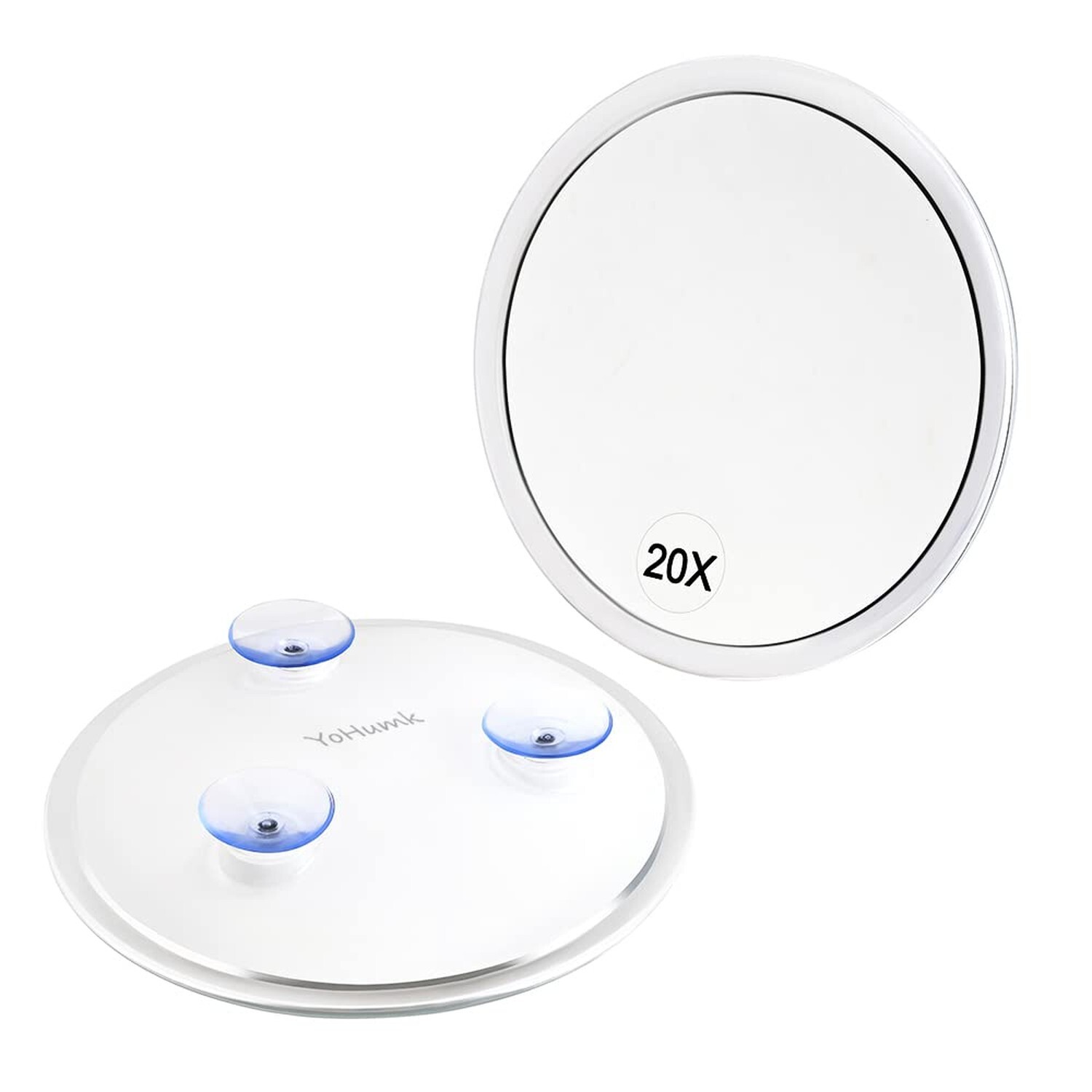 20X Magnifying Mirror with Suction Cups - 6 Inch - Perfect for Makeup Mirror - Tweezing - Blackhead and Blemish Removal - Pluck Eyebrows - Great for Home & Travel - See Details Clearly Product Details Brand: YoHumk Room Type: Living Room Shape: Round Product Dimensions: 6"L x 6"W Frame Material: Acrylic Brand: YoHumk Room Type: Living Room Shape: Round Product Dimensions: 6"L x 6"W Frame Material: Acrylic Style: Modern Mounting Type: Tabletop Mount Finish Type: Acrylic Surface Recommendation: Plastic Special Feature: Portable, Lightweight, Magnifying Color: White Theme: travel Specific Uses For Product: Personal Grooming Number of Pieces: 1 Number of Items: 1 Material: Glass, Acrylic Frame Type: Framed Item Weight: 148 Grams Assembly Required: Yes Magnification Maximum: 20 x Manufacturer: YH Co UPC: 785957552115 Item Weight: 5.2 ounces Country of Origin: China Item model number: YH-01 Date First Available: October 18, 2021 Be Confident - Walk out knowing you look your very best. No more missing smudged eye makeup, unseen blemishes, stray hairs, or small specks between your teeth. This magnifying mirror helps you make sure everything on your face is exactly how and where it should be. Sees very clearly. 20X Magnifying Mirror - that can Stick On and help you on the go. Our 20 x Magnification Mirror has our elegant and stylish acrylic frame with that is also perfect for Up Close Tweezing or Makeup Application. Large Viewing Area - Our circular 6 inches round (15cm) zoom mirror has a 5.24 inch (13.3cm) viewing area and shows you what you need to see while applying cosmetics, tweezing facial hair, or shaving. It is also perfect to see close up and magnify your eye to insert your contact lenses. Suction Pads Mounting Mirror - Our 20X magnification mirror has 3 suction pads to make mounting easy and secure. The stick on mirror is portable and is truly small enough for travel. Guarantee - We care about you and your satisfaction. We Offer you 100% money back if you are not satisfied with the 20X Mirror.