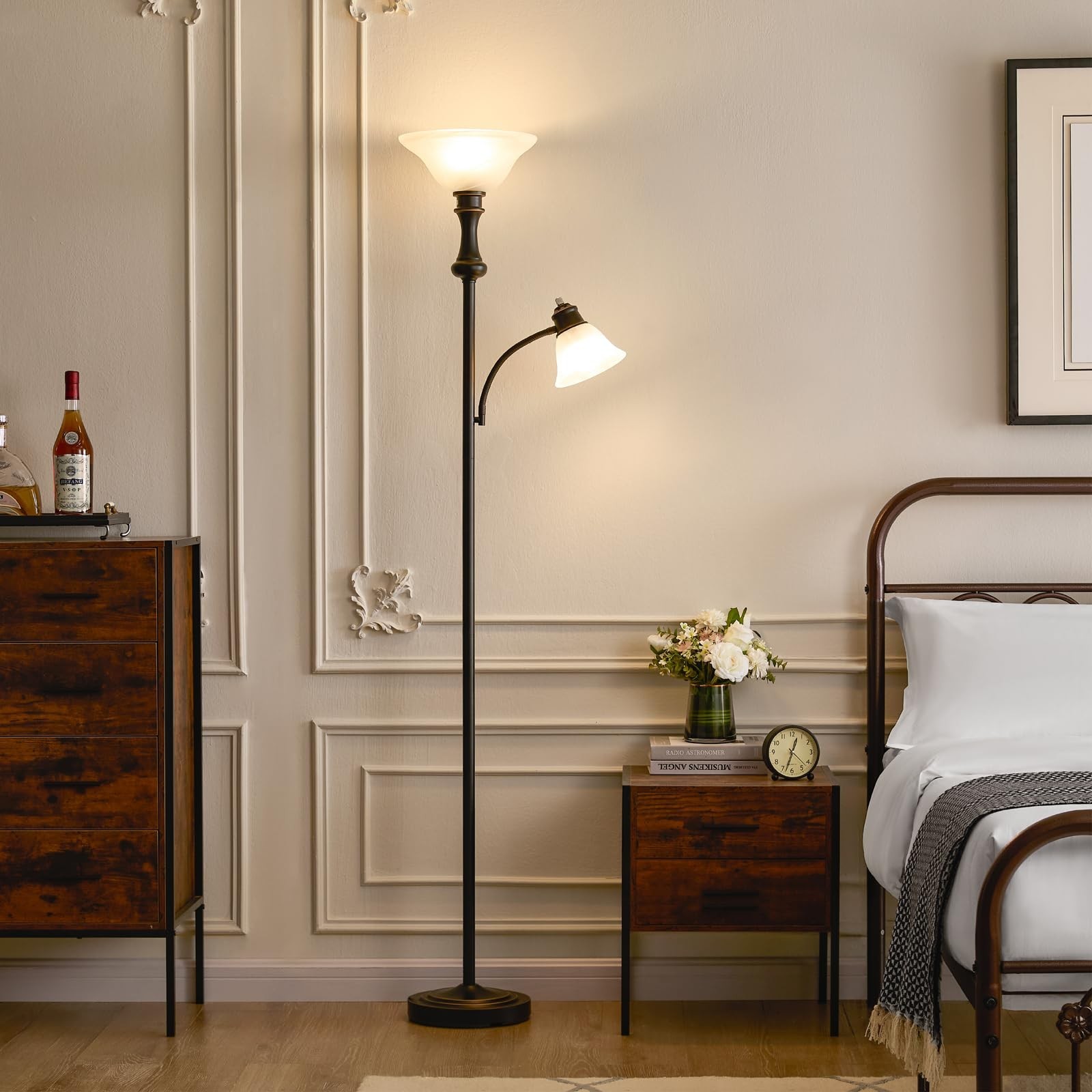 71'' Torchiere Floor Lamp for Bedroom with Glass Shade, Tall Floor Lamps for Living Room with Adjustable Angle Arc Reading Light, Modern Standing Light, Knob Switch, Bulb Included, Black Product Details Color: Black Brand: Leasgy MPN: 105-A UPC: Does not apply EAN: Does not apply Finish Type: Matte Base Material: Iron Bulb Base: E26 Product Dimensions: 11"D x 11"W x 71"H Item Weight: 14.1 Pounds Product Dimensions : 11 x 11 x 71 inches; 14.1 Pounds Item model number : 105-A Date First Available : September 29, 2025 Manufacturer : Leasgy Customer Reviews: 4.7 4.7 out of 5 stars 45 ratings Finish Type: Matte Base Material: Iron Bulb Base: E26 Product Dimensions: 11"D x 11"W x 71"H Item Weight: 14.1 Pounds Lamp Type: LED Shade Color: White Shade Material: Glass Switch Type: Knob Switch Style: Modern Brand: Leasgy Color: Black Light Source Type: LED Material: Glass, Iron Power Source: Corded Electric Number of Light Sources: 2 Included Components: 2 x A19 Led Bulb, 2 x Lamp Shade, 1 x Lamp Base, 4 x Lamp Poles, User Manual Is Waterproof: false Bulb Shape Size: A19 Mounting Type: Floor Mount Wattage: 100 watts Number of Items: 1 Lighting Method: LED Indoor/Outdoor Usage: Indoor Specific Uses For Product: Lighting Efficiency: High Voltage: 120 Volts Base Diameter: 10 Inches Is Cordless?: No Assembly Required: Yes Model Name: 105-A Product Benefits: provides stable, adjustable lighting with a modern design and frosted glass for better light transmission Manufacturer: Leasgy Theme: Modern Vintage Light Color: White Part Number: 1F-105-A Item Weight: 14.1 pounds Item model number: 105-A Finish types: Matte Batteries Included?: No Batteries Required?: No Date First Available: September 29, 2025 Frosted Lampshade: The lampshade of our modern floor lamp for bedroom decor is made of frosted glass with stronger light transmission. The glass material makes the light and shadow effect purer and more natural. The frosted material enhances the texture and luxury of the entire arc floor lamps for living room furniture, making it an indispensable decorative item in your home decor. Moreover, glass lampshades offer greater heat resistance than plastic lampshades Heavy Base:To ensure that the standing lamp for bedroom has sufficient stability, the base of our living room lamp is made of rubber, iron and sand. In addition, The base of the corner lamp is 10 inches wide, making it difficult for pets and children to knock over, thus providing a certain degree of safety for pets and children. It's a bedroom lamp you can trust Adjustable Small Lamp: Our tall lamp for living room corner is specially designed with a small night light. The small night light on the side of floor lamps for bedroom can convert the angle, so you can say goodbye to fixed light. Meet the light needs of different heights and sitting positions. Perfect for reading and working Modern & Retro Design:Our standing lamps for living room adopt black and gold color combination, which makes the whole product both modern and vintage, conveying an understated luxury taste. If you pursue a modern lifestyle with a sense of quality, our living room lamps not only provide lighting, but are also the best choice for your room decor, bedroom decor, living room decor and office decor Easy to Assemble: The tall floor lamp is very easy to install, just follow the instructions step by step to tighten the pole. If the wires are on the outside, you will need to straighten the wires from the base section of the pole before tightening, then you will get a perfect lights for bedroom After-Services:We always pursue the high quality of our corner floor lamp for office and offer a two-year warranty to our customers. If there is any problem with our stand up lamp, please feel free to contact us.We will provide you with satisfactory solutions