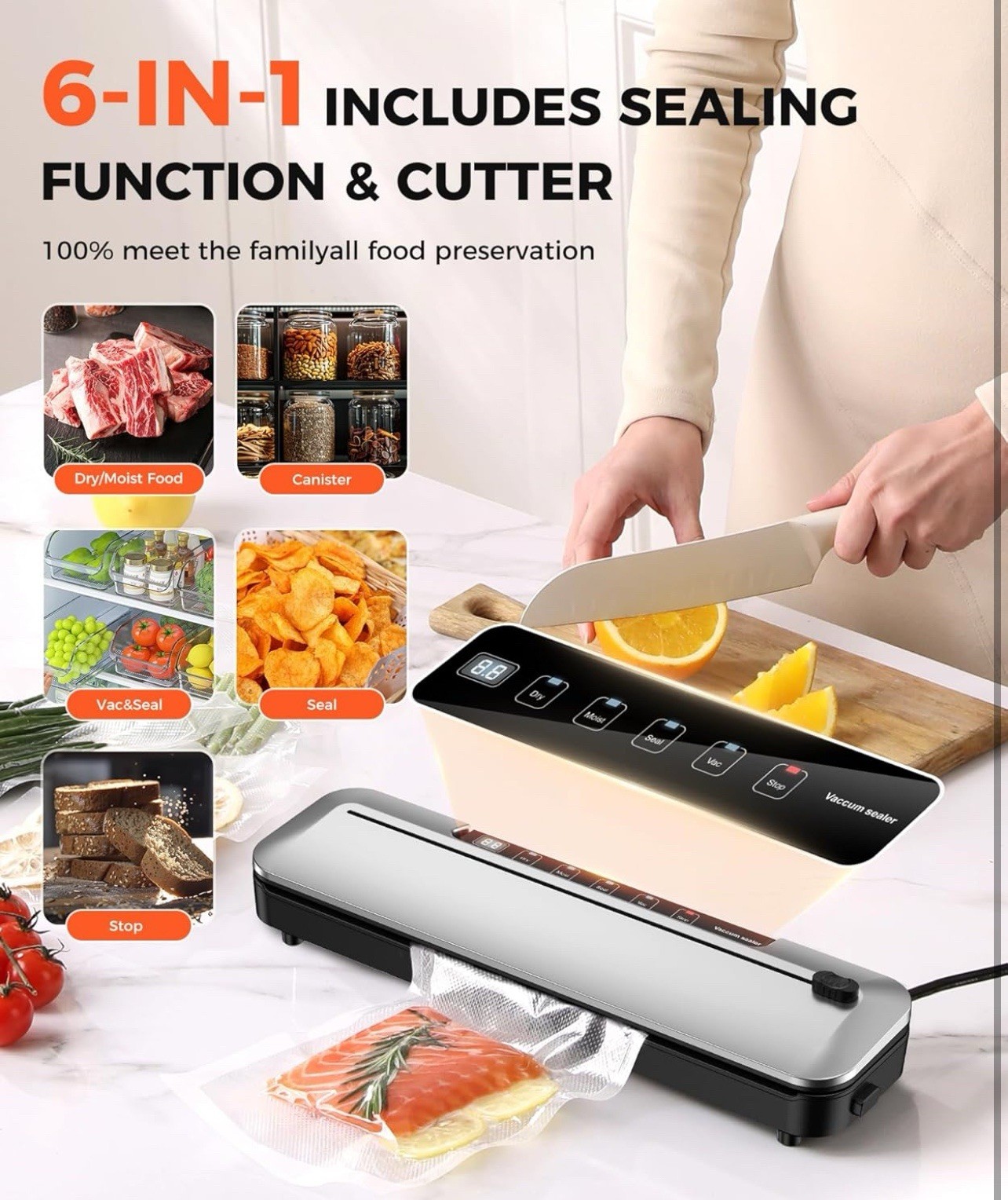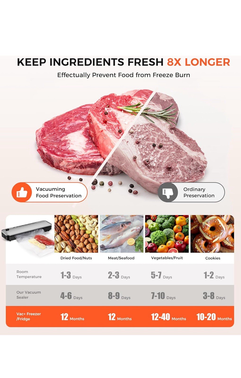 Extend Food Freshness 5x Longer with Vacuum Sealer
