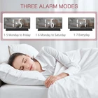 7.8" Projection Alarm Clock Smart Projection: Equipped with a 180° rotatable projector, this bedroom alarm clock can focus and project time digits on walls or ceilings clearly within a distance of 1.6 to 16 feet. Adjustable projection brightness levels (high, medium, off) to meet your different needs at different times of the day 3 Alarm Modes & Easy Snooze: This digital alarm clock offers 3 alarm modes: Monday to Friday, Monday to Saturday, or Monday to Sunday. Set alarms according to your workweek or weekend routines. The snooze function gives you an extra 5 minutes (default) of sleep, allowing you to wake up feeling refreshed 4-Level Brightness with Auto-Dimming: The LED screen features 4 adjustable brightness levels (high, medium, low, off) and an auto-dimming function that reduces light from 6 PM to 6 AM. This ensures minimal disruption during the night while providing the optimal level of brightness for you during the day Large Mirror Screen & Multi-Function: Features a large 7.8-inch mirrored screen and 4 modes of operation: clock mode, date mode, temperature mode and alarm mode. Regardless of the mode, the large fonts make reading effortless USB Powered & Time Memory: This projection alarm clock needs to be plugged in, and the screen is always on when it is plugged in. It also includes a CR2032 battery with time memory functionality, eliminating the hassle of resetting the time after accidental power loss Model Number: DS-3815LP.