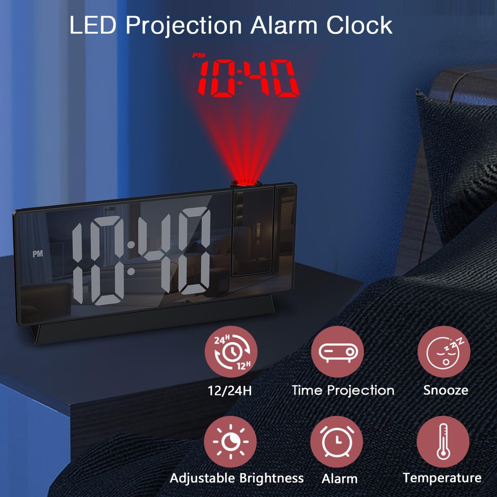 This clock is a game-changer! I love waking up to the time projected on my ceiling—no more squinting at a tiny screen. The rotating projector and adjustable brightness are perfect, and setting different alarms for weekdays is so convenient.