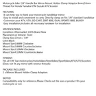 Gas Tank Fuel Cock Valve Petcock fit for Yamaha YZF R1 XJ900 YZ80 4KM-24500-00 18.76 USD Free shipping For BMW E46 323i 325i 328i 330i M3 305 02-06 LHD Center Console Trim Base BE F13 70.61 USD 74.33 USD Free shipping 5% off 6L80 6L90 Transmission Rebuild 1-2-3-4 3-5-Reverse Clutch Seals Pack O-Rings 20.89 USD 21.99 USD Free shipping 5% off NEW Set of 4 Door Handles Chrome For Chrysler 300 & 300C 2005-2010 4589009AH USA 74.87 USD Free shipping 7" LCD Digitizer Touch-Screen C070EAT01.0 For Uconnect Radios VP2 2018-2022 83.4 USD 87.79 USD Free shipping 5% off 1pcs Fuel Injectors 7561277 13537561277 Fit BMW N45 N46N E93 320I 2.0L 17.87 USD Free shipping M18X1.5 Female Aluminum Weld On Fitting Bung US 11.2 USD 11.79 USD Free shipping 5% off Oil Cooler Filter Housing Seal Gasket O-ring 21304-JA11A For Nissan Armada Titan 10.68 USD Free shipping CNC Adjustable Kickstand Side Stand Fit HONDA CBR 600 1000 RR 600RR 1000RR 41.86 USD Free shipping CARBURETOR CARB REPAIR REBUILD KIT FOR GY6 125CC Aprilia PD24J BMW ATV Go Kart 15.79 USD Free shipping 18213-65J00 Upstream Lambda O2 Sensor For Suzuki Grand Vitara 1.6 2.0L 06-15 29.79 USD Free shipping Speedometer Upper Dash Display Gauge Instrument For Honda Civic Sedan 06-11 113.17 USD Free shipping A Fantastic Shop Send us a message Our Store Seller Profile Feedbacks Save this seller Contact 7/8" Motorcycle Handlebar Mirror Adaptor Clamp Mount Bracket 10mm CCW Aluminium Motorcycle bike 7/8" Handle Bar Mirror Mount Holder Clamp Adaptor 10mm Thread Universal FEATURES: -It can help you to fixed your motorcycle handlebar mirror -Easy to install and convenient to carry. Directly clamp on fits 7/8" standard handlebar -Customize your ATV, UTV, GO CART, DIRT BIKE, DUAL SPORTS BIKE, BUGGY -Easy installation,includes all necessary hardware for installation SPECIFICATIONS: Condition: Aftermarket 100% Brand New Placement on Vehicle: Front Clamp Size:22mm / 7/8" Color:Black Mount Size:10MM Metric Rotation:CCW(Counterclockwise) FITMENT: Fits all 7/8" bar motorcycles/motorbikes/Streetbikes/Sportbikes/ATV/UTV/Scooters (Does not fit any mirror with reverse threads) PACKAGE INCLUDED: 2 x Mirrors Mount Holder Clamp Adaptors NOTED: Compatibility only for reference,Please Check out the size or product fits your motorcycle or not. About US About Our Items We strive to describe all items accurately and thoroughly, with the utmost care and attention to detail. However, to ensure a mutually satisfactory transaction, we kindly ask for your assistance in thoroughly reviewing the item description and photos, and addressing any questions before placing a bid. Customer Satisfaction We stand behind our commitment with exceptional service, a 100% money-back guarantee, and a dedication to customer satisfaction. I am readily available to address any inquiries or concerns you may have, both before and after your purchase. Our aim is to ensure your shopping experience is enjoyable and that you're delighted with your purchase. Feedback Your feedback is crucial to our business's success. If you're satisfied with your purchase and the service you received, we would greatly appreciate your positive feedback, along with an overall Detailed Selling Rating (DSR) of 5. Please take a moment to leave us positive feedback. Our eBay account is set up to automatically reciprocate positive feedback once yours is received. If you're considering leaving neutral/negative feedback or opening an eBay/PayPal case, we encourage you to reach out to us immediately. We're committed to resolving any issues to the best of our ability. Shipping Parcel will be shipped using Standard shipping method. For security purposes, items will be shipped exclusively to the confirmed address on Paypal. Please ensure your Shipping address is up to date before proceeding with payment. Estimated delivery time within the United States ranges from 3 to 10 business days, depending on your location. Returns We accept returns within 60 days from the date the buyer receives the item. If the item is found to be defective upon receipt, the customer has up to 30 days from the date of receipt to request an exchange for a new item or a refund. For returns due to a change of mind, we accept items in their original selling condition. However, if the package has been opened due to a mistaken order, it does not qualify for our return policy. Please note that the buyer is responsible for covering the cost of return postage. If you encounter any issues, please reach out to us via eBay message, and we'll respond within 24 hours. Pair Mirror Set 8mm Fits HONDA C50 C65 C70 C90 CM91 CM90 CB100 CB125S CL100 29.79 USD Free shipping Mirror Set Left & Right For Yamaha XP 530 T-Max 530 SX DX 2017 2018 2019 59.79 USD Free shipping Rearview Winglet Mirrors Pair Blue For Yamaha MT-07 MT-09 / SP MT-10 2016-2024 33.87 USD Free shipping Motor Black Rearview Side Mirrors For BMW S1000RR 2010-18 HP4 2011-15 71.13 USD 74.87 USD Free shipping 5% off 2x Custom Black CNC Aluminium Bar End Side Mirrors For Street Twin & Scrambler 43.79 USD Free shipping Red mirror delete blanking block off plates fits Suzuki GSX-R 1000 / R 2017-2024 19.79 USD Free shipping Side Rear View Mirrors For Honda CBR600RR 2003-2014 CBR1000RR 2004-2007 Black 31.87 USD Free shipping Set of 2 Universal Chrome Round Mirrors - 10MM With Long & Short Stem For Suzuki 42.79 USD Free shipping Rear View Mirror W/ Turn Signals For BMW S1000RR 2019-2022 M1000RR 2021-2023 143.79 USD Free shipping Long Arm Mirror Set For BMW C400GT / F900R / G310GS / HP2 Megamoto / Adventure 53.79 USD Free shipping Mirrors Turn Siganals For Suzuki GSXR750 2006-2014 GSX-R 1000 2005-2014 BLK USA 36.61 USD Free shipping M8 M10 Pair Motorcycle Mirror Adapters For 30mm Clamp Bar-End Mirrors Universal 22.79 USD Free shipping