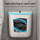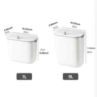 S ize : 7L 26*15*22CM( 10.23*5.9*8.26inch ) 9L 26*15*28CM( 10.23*5.9*11.02inch ) Bathroom Kitchen wall-mounted trash can : accessory ( 1 hook, 1 pasting board )Small and perfect fit for most cabinet doors, pantry doors, cupboard; The thickness of the door should be less than 0.95 inch( 2.5cm ).or it can be directly attached to the wall. Specifications :7L or 9L Color : white Material : PP Practical & Creative Designs : 【Ideal for Kitchen Cooking】: Convenient for throwing cooking garbage, kitchen floor space saver, and stop the odors. 【Ideal for Bathroom】: Convenient for throw away waste paper towels,and stop the odors. 【 Open Methods】: slide type design Scenes : 1. For Kitchen or For Bathroom or For Office or For Bedroom Packing list 1 x trash can bin