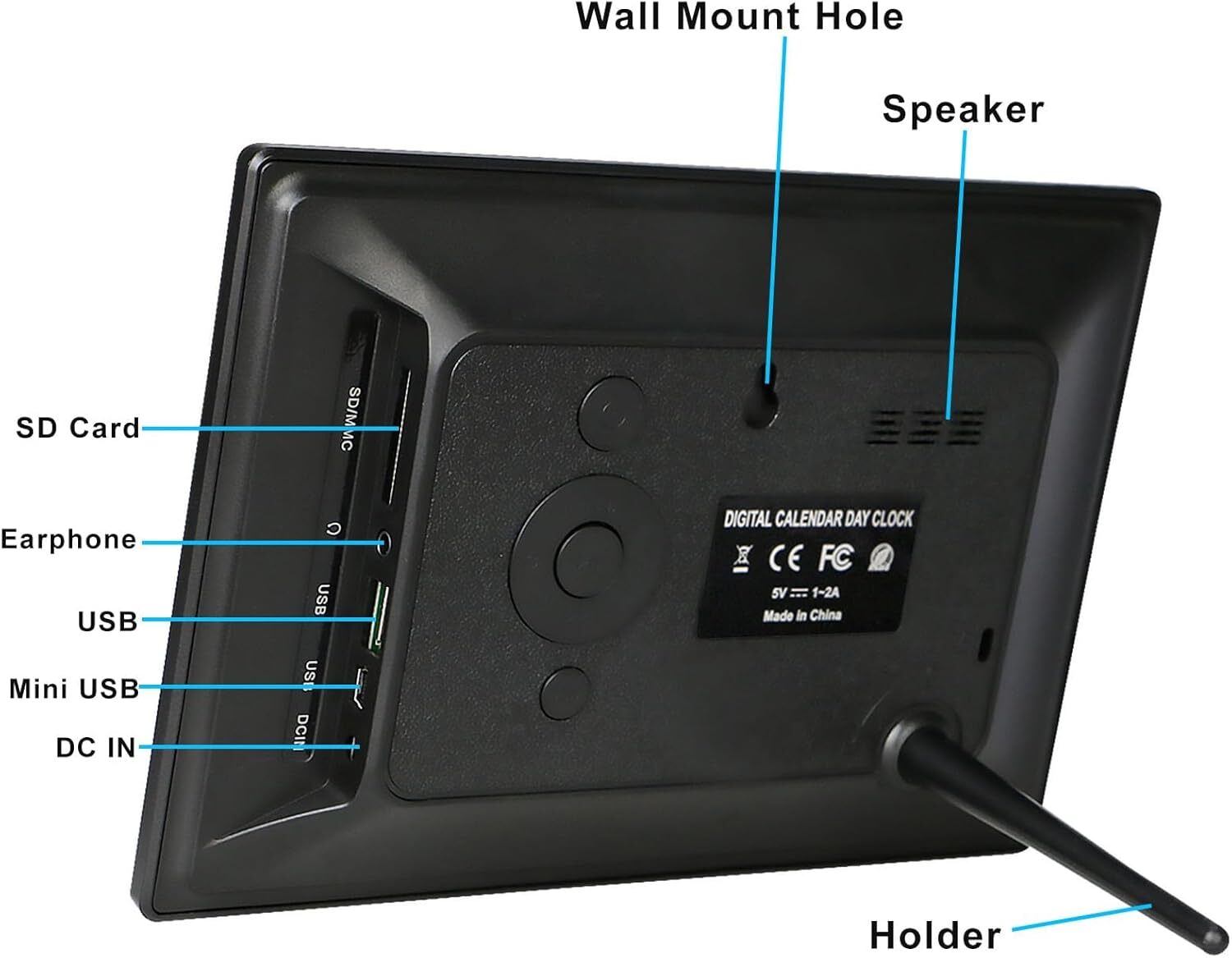 【UNIQUE AM PM CLOCK】-Day date time clock clearly spells out DAY DATE TIME MONTH and YEAR in large,Time mode [ 12 or 24 hours], 5 time period: 6:00am - 11:59am (MORNING), 12:00pm - 5:59pm (AFTERNOON), 6:00pm - 8:59pm (EVENING), 9:00pm - 11:59pm (NIGHT) and 12:00am - 5:59am (PREDAWN) 【12 ALARMS OPTIONS】-Dementia clock with 12 Alarm Modes Easy set, Single Alarm, Every Day, Mon. to Fri. or Weekends Only. & tag: Meal, Medicine, Clinic, Shower, Gardening, Cleaning, Appointment and Walk dog. It is quickly becoming a perfect Senior Care and In Home Care necessity 【AUTO DIMMING 】- Memory loss clock Automatic brightness conversion during the 7:00 PM and the 7:00 AM(Mid, Low or High Brightness); also can adjust brightness by yourself (level 1-5) 【BATTERY BACKUP & 8 LANGUAGES】- In case of the power outage, Alzheimer Clock will be reset to the correct time and date when the power returns. Seniors clock is with 8 Languages: English, French, Italian, Dutch, Spanish, Polish, Nederland and Welsh 【SATISFACTION PROMISED & IDEAL GIFT】-We believe in our products. That's why we 30 days 100% money-back and provide friendly, easy-to-reach support. The words Dementia, Alzheimer's or Memory Loss are ‘not’ printed on the clock itself so it makes a great gift for those special loved ones, especially Grandma & Grandpa