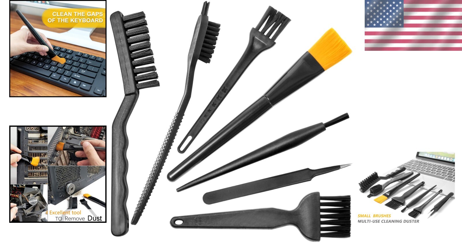 Versatile 7-Brush Kit for Electronics - Effortless Cleaning for All Devices ‹ › ‹ › ‹ › ‹ › ‹ › ‹ › ‹ › ‹ › Versatile 7-Brush Kit for Electronics Effortless Cleaning for All Devices Product Features: Wide variety of brushes, ensuring you have the perfect tool for any task. Diverse bristle hardness and sizes tailored for specific cleaning needs. Two longer handle brushes with stiff bristles ideal for heavy duty scrubbing tasks, such as removing grout. Yellow bristle brush and small soft brushes designed for intricate cleaning in hard-to- areas. Compatible with Compressed Air Dusters, Dust Cleaning Gel, and Vacuum Cleaners for optimal results. Benefits: Make routine electronics maintenance hassle-free and efficient. Perfect for a variety of devices: mechanical gaming keyboards, PCBs, fans, electric razors, humidifiers, window tracks, printers, and sewing machines. Maintain the longevity and performance of your gadgets with regular cleaning. Designed to every nook and cranny without damaging delicate surfaces. Why Choose Our 7-Brush Kit? Elevate your cleaning routine with our Versatile 7-Brush Kit, meticulously designed for electronics. Whether you're tackling the challenging buildup in tight spaces or maintaining your beloved devices, this kit provides the right brush for every job. Say goodbye to dirt and debris while safeguarding your electronics from damage. This is not just a cleaning kit; it's an investment in the functionality and lifespan of your devices. Don't compromise on cleanliness—experience the difference with our expertly crafted brush collection. Order yours today and transform the way you maintain your devices! Shipping Free & Fast Shipping - We offer free shipping to most of the USA with a normal delivery time of 3-7 days. However, due to the current situation, additional delivery time (up to 3 weeks) may be required for some items. Alternative Carriers - We may use alternative carriers (e.g. USPS, FedEx, UPS, etc.) to ensure your package arrives safely and on time. Due to the use of multiple carriers, we are unable to provide a tracking number automatically. Handling Time - Orders are processed and shipped within 1-2 business days of receiving cleared payment. Shipping Restrictions - Shipping to Alaska, Hawaii, Puerto Rico, Guam, and other US territories may incur shipping charges or delivery restrictions. Please contact us before ordering, or your order can be refunded/cancelled. State Restrictions - There may be restrictions based on your state of purchase. For example, certain items may not be shipped to California due to state regulations. Contact for Tracking Updates - If you require tracking updates or have any concerns about the delivery of your order, please feel free to contact us, and we will be happy to assist you. Return 30-Day Hassle-Free Returns - We want you to be completely satisfied with your purchase. If you are not, you can return the item within 30 days of receiving it for a full refund or exchange. Easy Return Process - To start a return, simply contact us and we will provide you with a prepaid return shipping label and detailed instructions. Restocking Fee - There are no restocking fees for returns. However, the buyer is responsible for return shipping costs if the return is not due to a seller's error. Refund Processing Time - Refunds will be processed within 5 business days of receiving the returned item in its condition. Payment We accept all major credit cards, PayPal, and Apple Pay for your convenience. Your payment information is secure and encrypted to ensure a safe and seamless transaction. Please complete your payment within 3 days of purchase to avoid any delays in shipping. Feedback Your feedback is extremely important to us. We strive to provide the best products and customer service possible. If you are satisfied with your purchase, please take a moment to leave us a positive review. If you have any concerns or issues with your order, please contact us before leaving negative feedback. We are committed to resolving any problems and ensuring your satisfaction. Contact Us If you have any questions or concerns, please feel free to out to our customer support team. You can contact us through the eBay messaging system. We are available Monday to Friday, 9:00 am to 5:00 pm EST, and we will do our best to respond to your inquiry within 24 hours. Buy it now and enjoy a pleasant shopping experience! Expiration Date: Cleaning Brush Kit Model: Cleaning Brush Kit Unit Quantity: 7 Features: Extendable,Long Handle,Flexible,Angled Bristles,Wide variety of brushes,Different bristle hardness,Stiff bristles for heavy duty scrubbing,Cleaning hard to places,Great for routine electronics maintenance,PCB cleaning,Fan cleaning,Electric razor cleaning,Humidifier cleaning,Window track cleaning,Printer cleaning,Sewing machine cleaning Material: Nylon,Plastic handle,Nylon bristles Shape: Brush Type: Cleaning Brush Kit Color: Black Skin Type: All Size: Standard Unit Type: Unit
