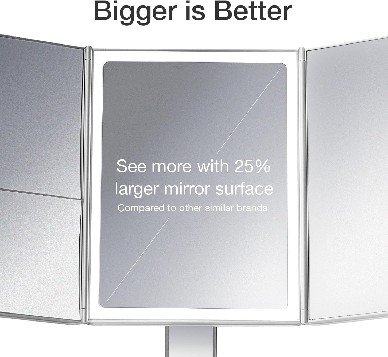 This makeup mirror is a game-changer! The LED lighting is bright yet soft, making makeup application flawless. Love the adjustable magnifications and wide tri-fold design—perfect for seeing every detail. The touch controls are super convenient, and the lighting truly mimics natural daylight. Sleek, stylish, and worth every penny!