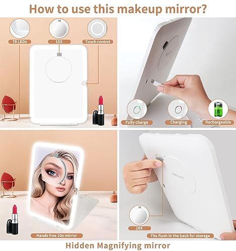 This lighted travel mirror is a game-changer! The slim, lightweight design makes it perfect for trips, yet the 78 LEDs provide bright, even lighting—ideal for flawless makeup or skincare. The 10X magnifying mirror is incredibly sharp, and USB-C charging is so convenient. It works great on tabletops and fits easily in a bag. A must-have for travel or everyday use!
