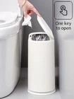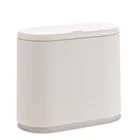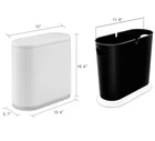 SIZE:The kitchen trash can is 12.6 inch X 12 inch X 5.7 inch to ensures large storage capacity, it holds 2.1 Gallon daily home garbage easily DESIGN:A stylish trash can with press top lid which can hide odors and litter The double card slot design can place two garbage bags at the same time to help you sort garbage,Modern shape matching classic color and smooth lines will enhance your visual enjoyment EASY TO USE:Just press the button on the lid to open and close,Don't worry about naughty dog or other pets turning over the trash can(Tips:The buckle of the trash can lid needs to be installed by yourself),plastic interior bucket can be easily removed for convenient waste disposal and clean USAGE SCENARIOS:Fits into narrow openings and small spaces easily,Great for bathroom,office or wherever space is limited SATISFACTORY SERVICE:If you have any problems about our product contact us at any time