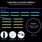 All In One Kit: 8 Pre-Cut Short RGB LED Strip Lights, come with 160 inch LED strips (20 inch *8), PIR motion sensor controller, IR remote, 12V UL-Listed power supply, 7 pcs 5 inch and 4 pcs 20 inch connectors and all accessories you need Small RGB LED Light Strip: Ultra bright 5050 LED Strip with 30 LEDs, total 240 LEDs. Pure color (Red blue green yellow purple white). Pre-cut design for easy DIY and customization. It's excellent ambient light kit for Halloween, Christmas, Parties, etc 3 Lighting Modes Optional: “CLEAR” Mode - constant on all day; “AUTO” Mode - remain OFF when ambient environment is bright enough, while turn ON automatically when motion detected at darkness within the sensing range (MAX: 16.4 ft, 120°) and turn off after 30 seconds of inactivity. “PIR” Mode - all day sensing Music Sync Led Lights: It can cycle through colors and brightness levels with the music melody. Color changing led tape light with memory function, the power strip will keep your last setting of color and mode when turning on again even after power off Safe and Durable: Super strong self-adhesive backing will keep your LED strip lights forever. No worries of strips falling down again! 12V Premium Adapter is ETL Listed certificated which makes it safer and more durable for you Easy Installation: The light bar is fixed with the adhesive on the back. The cables are fixed neatly with the provided clips. Best choice for led shelf lights, behind wall decor light, showcase display light, under cabinet light, Tik Tok lights, etc Tips:A 12W adapter can be connected to a maximum of 16 light strips. So if a total of more than 16 light strips are connected with 1 adapter, the adapter will be overloaded and the adapter may be damaged