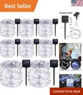8 Pack Solar String Lights Outdoor Waterproof Each 240 Led 78ft Solar Fairy Lights Outdoor 8 Mode Led Solar Outdoor Lights Tree Lights Waterproof Copper Wire Lights for Tree Garden YardCool White Long Solar String Lights: you will receive 8 pack of LED solar string lights set, 624 ft in total, each string is 78 ft with 240 bright LED bulbs; There are 8 different lighting modes; The solar lights for trees is x 2 65 inches larger panel with 800mAh built-in battery, solar lights outdoor is more energy saving, convenient and practical 8 Lighting Modes: the solar fairy string lights have on/ off buttons and 8 different lighting modes; The on/ off button is easy to find and use; You can set the b mode at different times to meet your diverse decorative needs; You can also save your satisfactory mode settings by pressing the mode button; The built-in memory storage chip will keep your last setting mode for you to use directly next time Energy Saving and Efficient Solar Decoration: the outdoor tree lights adopt solar energy without additional charging operation; Solar string lights with 180 degree, adjustable solar panels, which can better absorb sunlight and turn into brighter lights to illuminate your yard; Charging is completed within 3 hours and can work up to 10 hours to make your night more beautiful and romantic IP44 Waterproof Function: the solar lights and panels have IP44 waterproof rank, which can resist rain and snow weather; Please do not immerse the panels in water; Waterproof copper wire lights are suitable for indoor and outdoor; You can DIY any shape you like to add atmosphere to your holiday life Wide Application: solar garden twinkle lights are a nice outdoor decoration; It can make you supplement external lights at night, let you see the beauty of flowers and the world, add atmosphere to your patio party; It is widely applied in hotels, gardens, balconies, holiday dinners, birthdays, Christmas and various parties