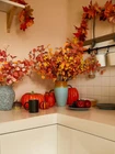This product is a very good choice for you to add the Fall vibe of your house. Inside Package This Fall artificial flower bouquets comes with 6 branches of orange Lysimachia and 2 branches of yellow babysbreath. Fall & Versatile Decor These fake fall flowers Bouquets can add a touch of Fall for your house. These rusic floral arrangement can be applice for many places: table centerpiece, shelves in kitchen or living room or office, door decoration for front door... Easy to care No need of worrying about fading, withering, cleaning up fallen petals. These Artificial flowers can be used by a hair dryer with hot air to soft them and then shape them to make them look more natural. Rich Elements: This Fall artificial flower bouquets comes with 6 branches of orange Lysimachia and 2 branches of yellow babysbreath, which can totall present its brilliant beauty. It is so enough for you to depart for decorating more than place in your house. Fall Decor: Orange and yellow, Fall main color, harmoniously show up on these fake farmhouse bouquets, which can add a touch of Fall for your house, let you perceive a sense of Fall as soon as possible.What's more, its lifelike appearance is no less than the real but can maintain longer. Versatile Decor: These rusic floral arrangement can be used to add a fresh point of your house for many places, such as table centerpiece, shelves in kitchen or living room or office, door decoration for front door and so on. Its Fall vibe can also be applied for different decor style, such as Rustic Farmhouse Style, French Court Style, Modern Simple Style and so on. Especially this bouquet with pumpkins is a good idea for Halloween decor. Easy to care: These floral bouquet in Autumn can be easy to maintain for it artificial material. No need of worrying about fading, withering, cleaning up fallen petals can to a large extent save your time and energy and can easy to maintain the whole Fall. Only what to do is to take them out, wipe them with a damp paper if you like, diy them the way you like to add the beauty for your house. Warm tips: These Artificial flowers can be used by a hair dryer with hot air to soft them and then shape them to make them look more natural. If there is any problem during the shopping, please feel free to us. is committed to providing customers with a good shopping experience