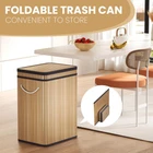 ❤️【Natural Bamboo Construction】: The trash can is made from high-quality bamboo that withstands long-term use. Durable and sturdy, healthy and eco-friendly, features with bamboo texture, The rustic country design will complement your home decor and also can be recycled. The color may vary due to it being handy and made of natural bamboo! 🔥【Mega 80Litre Trash Can】: Measuring in at 15.7”(L) x 11.8”(D) x 23.6”(H). Fits 50% more trash compared to a standard 21 Gallon / 80Liter Can. Take fewer trips taking out the trash For use with any “Black Bag” with capacity of 28 Gallons or larger - perfect for large families 🎁【Foldable Trash Can】trash can is foldable, easy to carry and store, you can use it more than just at home. Use as collapsible trash can at party, outdoor camping or rv with trash bag in it, take out the trash easily and keep your can always like new; Foldable can is convenient to put in the trunk to save space 🌟【Wide Application】 Be a stunning addition to your living room, bathroom, bedroom, kitchen, office, and any other place where trash cans are needed, complementing any farmhouse, industrial, contemporary, or urban design. Put this rustic bamboo wastebasket in your home to add farmhouse decoration. 👊【Say Goodbye to Bad Odor】 No more smelly trash cans! This garbage can with lid features a lid that seals in the smell, so your place will always smell fresh.