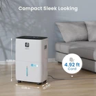 Dehumidifier for Home: This dehumidifier for basement removes up to 80 pints (95℉, 90% RH) of moisture per day and with a maximum dehumidification area of 5000 square feet. This dehumidifier with drain hose has a dehumidification range of 30% to 80%, increasing or decreasing by 5% at a time, which you can adjust to your preferred humidity level. In addition, this dehumidifier has 4 modes for you to choose from - Sleeping Area (55% RH), Living Area (50% RH), Basement (45% RH) and Continuous (CO) Most Efficient Energy Star Dehumidifier: dehumidifier is recognized as ENERGY STAR Most Efficient deliver cutting edge energy efficiency along with the latest in technological innovation. Dehumidifiers for home by work more efficiently with less energy and can help you reduce your electricity bill by up to 30% compared to regular dehumidifiers. It is the ultimate example of energy efficiency and environmental friendliness. Dehumidifier that Simultaneously Offers 2 Drainage Options: Other dehumidifiers can only gravity drainage or tank, but the dehumidifier does it all—tank (with a visible water level) and gravity drainage. The full-tank alert is a fantastic touch, and it comes with a generous 1.06-gallon tank and a 3.28' gravity hose. The best part? It’s even compatible with your garden hose (φ8). Dehumidifier with 3 wind speeds: The dehumidifier offers an unprecedented 3 wind speed settings: high, medium and low, which quickly disperses moisture from floors and furniture, preventing humidity and ensuring that dry air covers the entire space more effectively. Unlike normal dehumidifiers that only offer a humidity range of 40%-80% RH, dehumidifiers extend the range to 30%-80% RH, pushing the industry limits. Dehumidifier's Innovative High-Performance Chip Compatible with Rhea: With built-in smart temperature and humidity sensors, millisecond-level dynamic detection keeps humidity within the ideal range. A full-stack proprietary humidity compensation algorithm ensures that Rhea exceeds industry standards for humidity accuracy. Its chip supports auto-defrost, power-off memory, timer, button lock, and overload protection. Plus, it with a digital display of humidity values that can be easily read Dehumidifier with cutting-edge high-efficiency rotary compressor technology: uses Cutting-Edge High-Efficiency Rotor Compressor, whose core components evaporator and condenser adopt“3+2”structure with one more row than others. we use 7mm diameter high-tooth internal thread pure copper pipes instead of aluminum tubes. We also use advanced blue hydrophilic aluminum foil, achieving breakthrough heat exchange efficiency meeting the most rigorous energy efficiency standards in history. 1-year full machine coverage, 2-year extended coverage, and lifetime technical support: Founded in 2015 and based in California, USA, Group operates a 600,000 square-foot industrial-grade manufacturing facility with an annual production capacity of over 2 million units. Group currently holds more than 20 patented technologies and leads over 100 industrial projects, dedicated to providing faster and better solutions to maximize customer satisfaction.