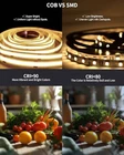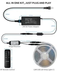 80Ft Extra Long COB LED Lighting --- These warm white 3000K COB LED strip lights for bedroom 80ft (2 rolls of 40ft) are long enough to decorate and lighting larger areas giving you more coverage and more design options. You can use these COB LED strip lights as supplementary lighting in dark areas to enhance the sense of hierarchy in your space. Suitable for bedrooms, kitchens, stairs, dining rooms, ceilings, dining bars, 3D printers, TVs,etc.! Superior COB LED light strip --- Each 40Ft roll of strip lights has 3888 LEDs providing illumination simultaneously, making the LED strip lights appear to be continuous light. Unlike traditional SMD LED strip lights, LED lights stable lighting, recording video with cell phones or cameras are no strobe phenomenon. Made of high quality materials with excellent craftsmanship. UL Listed 24V low power LED COB light strip, safe and touchable, good heat dissipation performance. White COB LED strip light with RF remote --- 360 degree all-round controllable, the RF remote control distance up to 49ft - 66ft (15-20 meters), perfect to make up for the shortcomings of IR remote control. Dimmable LED strip lights with night mode, timing and memory function, it will remember the state when it was last turned off, and the mode and brightness will be the same as the last one when it is turned on again. Flexible COB LED strip light --- You can cut the strip light every 50mm at the cut marks on the strip light or you can also reconnect the strip light at these cut marks by soldering or using Two Ends Wire Connector which we included in the package. COB LED strip light kit includes 24V power adapter, 40FT LED light strip * 2 rolls, RF remote control (Need AAA x 2 batteries, NOT INCLUDED), signal receiver and connector etc. It can be installed and used directly, no need to purchase other accessories. The back of the strip comes with adhesive, tear off the backing can be pasted to the corresponding clean and dry location, easy to install.