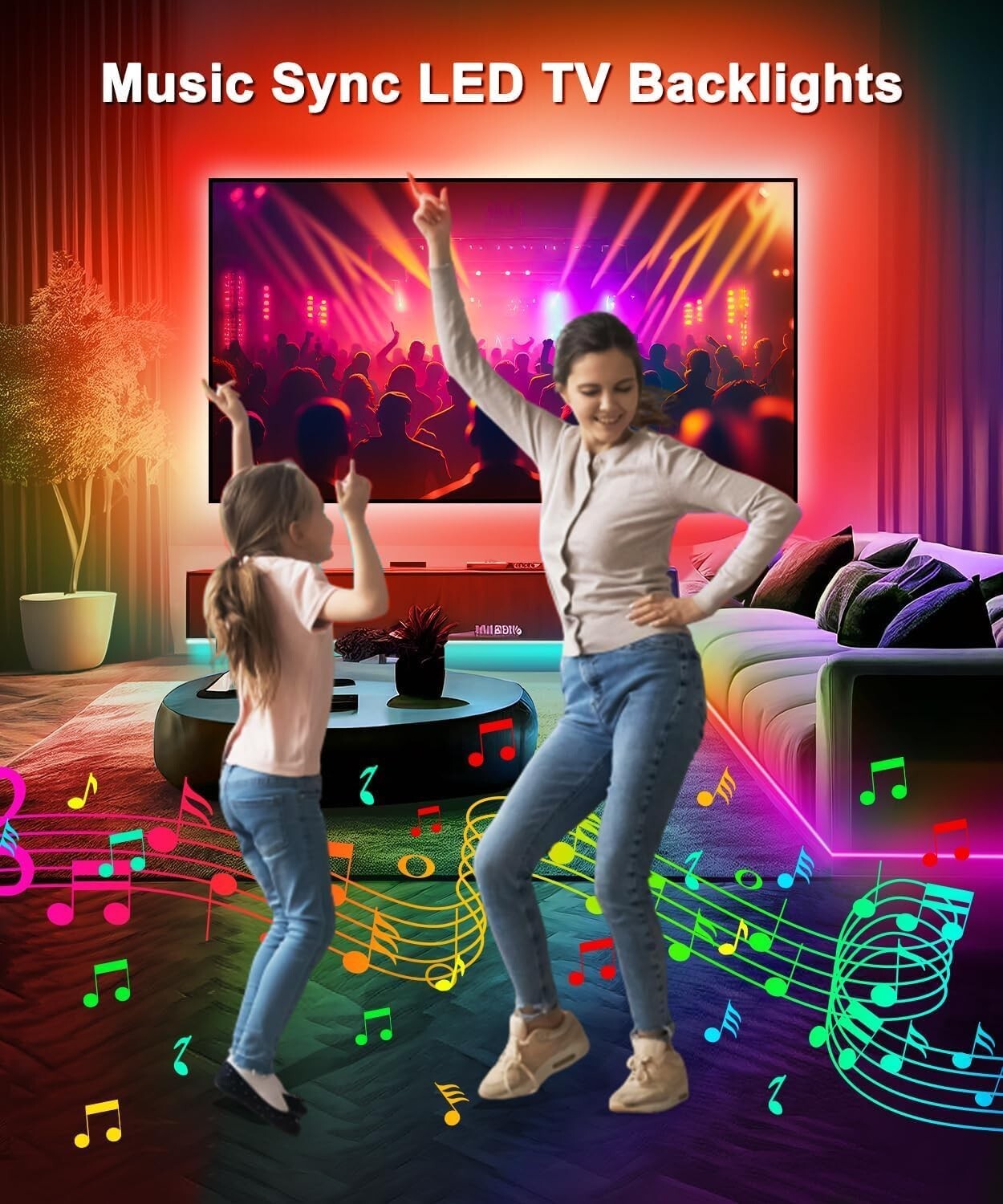 Led Strip Lights 8.2ft TV Light Strip for 32-58 inch TV/Monitor Backlight USB... DISCRIPTION Bright LED Lights for TV - Our MORIACC RGB led lights for TV has 18 high brightness LED beads per meter and upgraded IC technology, which can provide 16 million colors and multiple dynamic behind TV led lighting effects, adding wonderful TV led lights atmosphere to your family leisure time. Music Sync TV LED Lights - With a built-in highly sensitive mic,this TV led lights that sync with TV can dance to the rhythm of music or sound. Push the “Music” button on remote/3-key controller or “Mic” mode on APP,then you will get the music sync function. Whether you're watching a film or at a party, our led TV lights behind will give you an exciting visual feast! APP Control TV LED Backlight - Follow the manual to download the free APP “DuoCo Strip”,then start your wonderful light journey. Led lights for TV solid color & 21+ dynamic mode can not only adds light to your TV but also provides a cozy visual experience. When you need some exciting atmosphere, select the music/mic mode and the led lights that sync with TV will dance to the music, a perfect partner for your party, movie or game! Remote & 3 Button Control TV Lights - In addition to APP, you can also use remote control or 3-button controller to control the Led lights for TV, you can freely switch on and off the LED light strip or change the color mode of the TV led lights, no matter you are on the bed or on the sofa, you can freely choose the way to control the TV led backlight. Easy Install LED TV Lights - The Led lights for TV with remote can be installed on any smooth and clean surface, best for TV or monitor. After measuring the size of your TV, tear off the tape on the back of the led strip, stick the light strip to the back of your TV, cut off the excess strip along the copper, plug the USB into your TV, and you're ready to use MORIACC led strip lights!