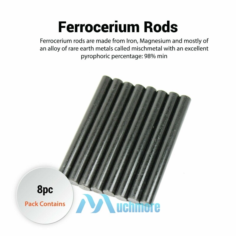 8~40Pcs Ferrocerium 5/16" Flint Fire Starter Magnesium Rod Survival Lighter Kit Product Description 8~40Pcs Ferrocerium 5/16" Flint Fire Starter Magnesium Rod Survival Lighter Kit 100% Brand New & Excellent quality Free & fast shipping, with tracking number provided Specifications: * Brand New, Solid * Diameter: 5/16inch/0.8cm * Length: 3.15inch /8cm * Weight: 26g How to use: 1.Scrape some shavings down to a piece of tissue; 2.Friction two of them, make its produce sparks; 3.Just scrape one time. Package Includes: 8~40pcs x Ferrocerium Rod Payment Shipment Return Feedback Contact us Payment * We Accept Payment via PAYPAL ONLY . * Payment Must be Made within 4 Days of Auction Closing. * Non-Payment may Result in a UPI (Unpaid Item) being Put on Your Account. eBay will Automatically Close Your Account if You Accumulate 4 UPI's total. * Please List Your Special Requests ( Color, Size, Packages, etc. ) in the PAYPAL NOTES SECTION when you make payment. Shipment * Shipping will be handled in 24 business hours after payment got. Ship to PayPal Address only , please confirm it before paying. * Please leave your phone number in the address in case there is an address problem. Return * Returns and Exchange accepted within 60 Days. * Refund will be given as Money Back. * Free Return shipping. * Before you return the defective item,please email us for the RMA, and we will reply you in 24 hours in working days. If you do not get reply please check if your mail box has refused our reply or not, then send to us again, thanks! Feedback If you are satisfied with the transaction please remember to leave us a positive feedback (5-Star) will be much appreciated. Please DO remember to contact us before leaving the neutral (3 stars) , negative feedback (1-2 stars) or opening a case/dispute if any problem caused by the item . Normally your email would get replied within 24 hours on working day and your issue would be followed up carefully until we've reached a consensus! We will try our best to solve the problem and leave you a happy shopping mood here. Thank you! We are not only selling good items, but also selling with excellent after-sale service and a strong sense of responsibility. We will always try our best to find you a satisfactory solution if any problem takes place! Contact us Email muchbuy-outlet at Paypal registered email or ebay message.
